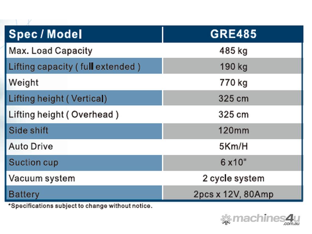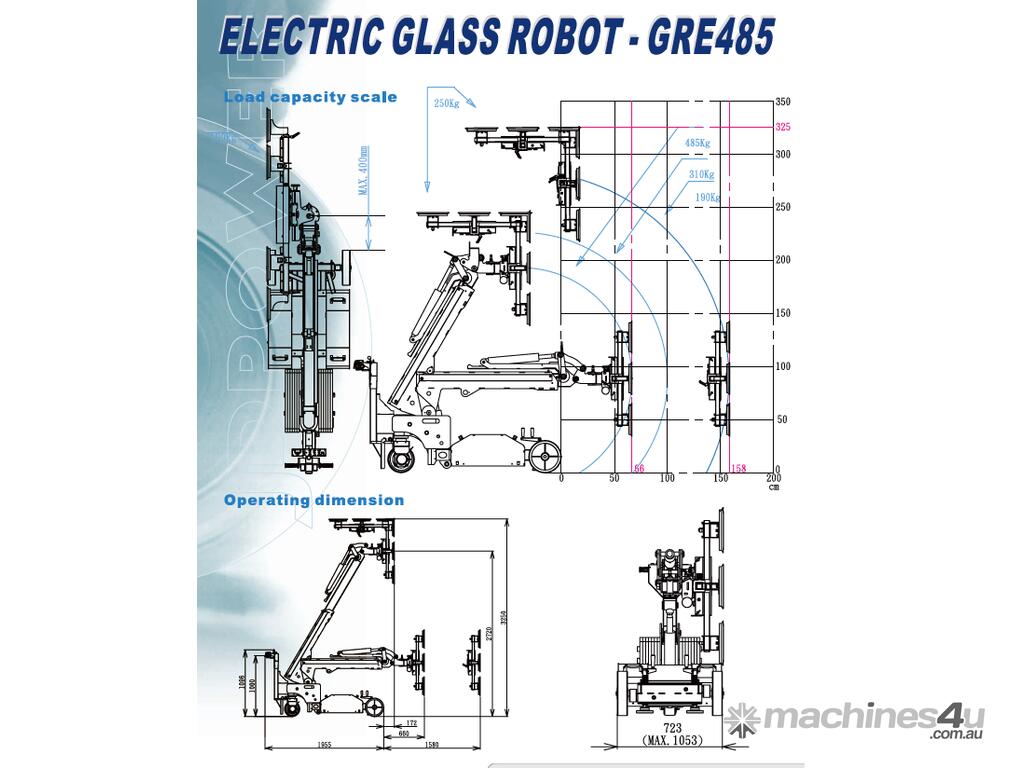 The GRE485 Electric Glass Lifting Robot is a purpose-built, self-propelled glazing robot engineered for safe, efficient transport and installation of large glass panels. With a maximum load capacity of 485kg, this machine is ideal for challenging jobsites—whether unloading, transporting, or installing heavy façade glass in commercial or industrial applications.