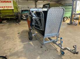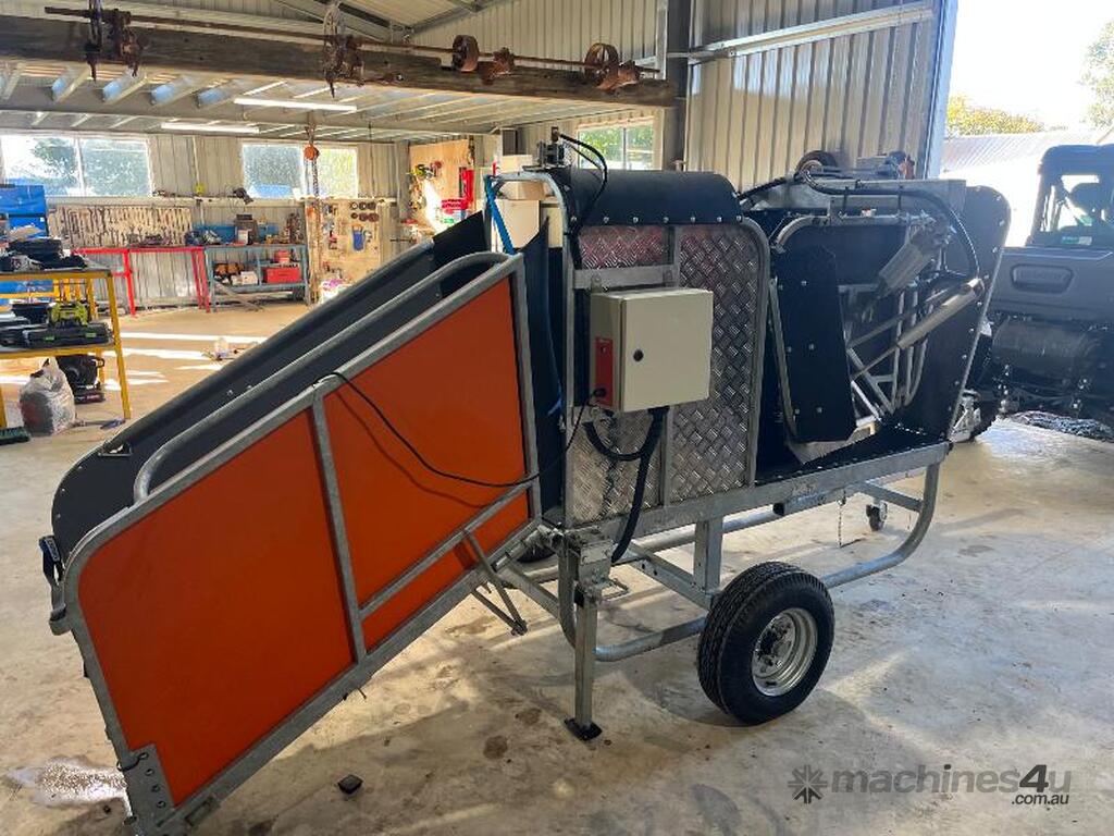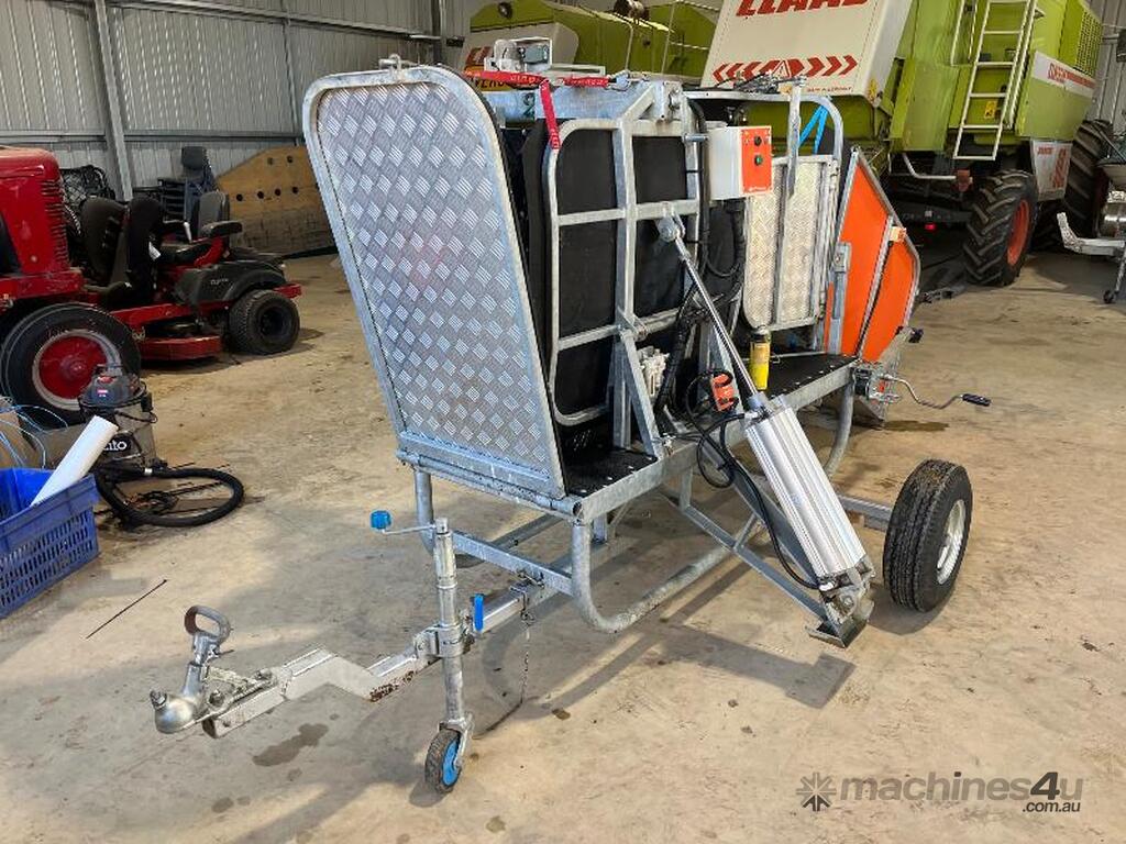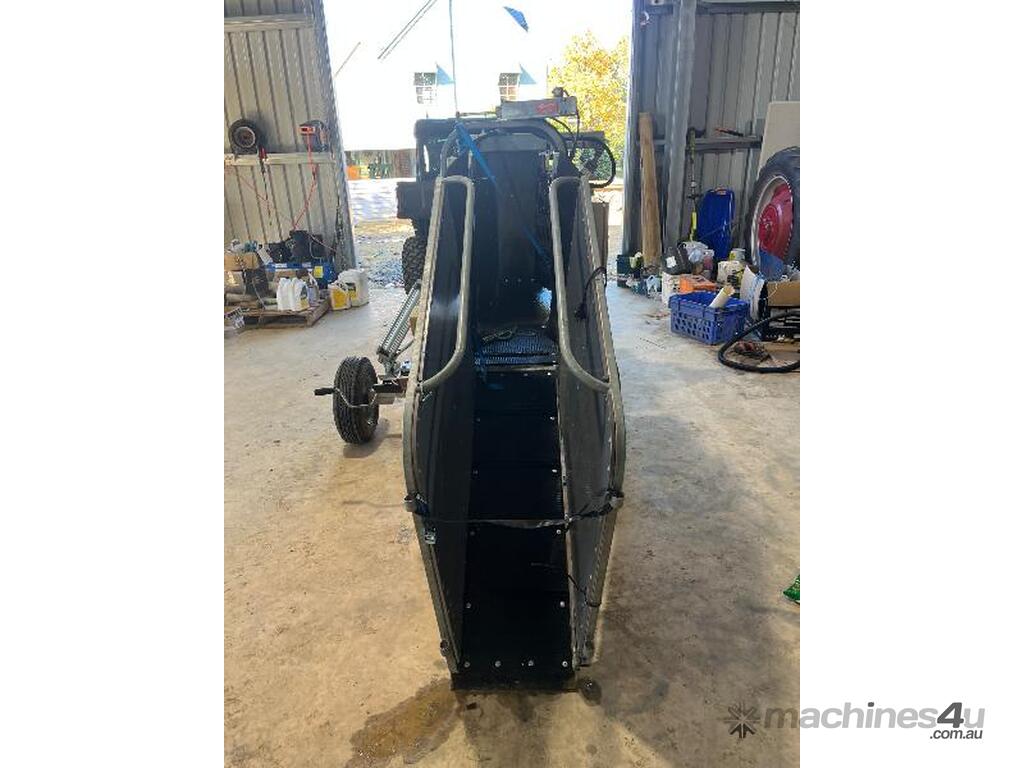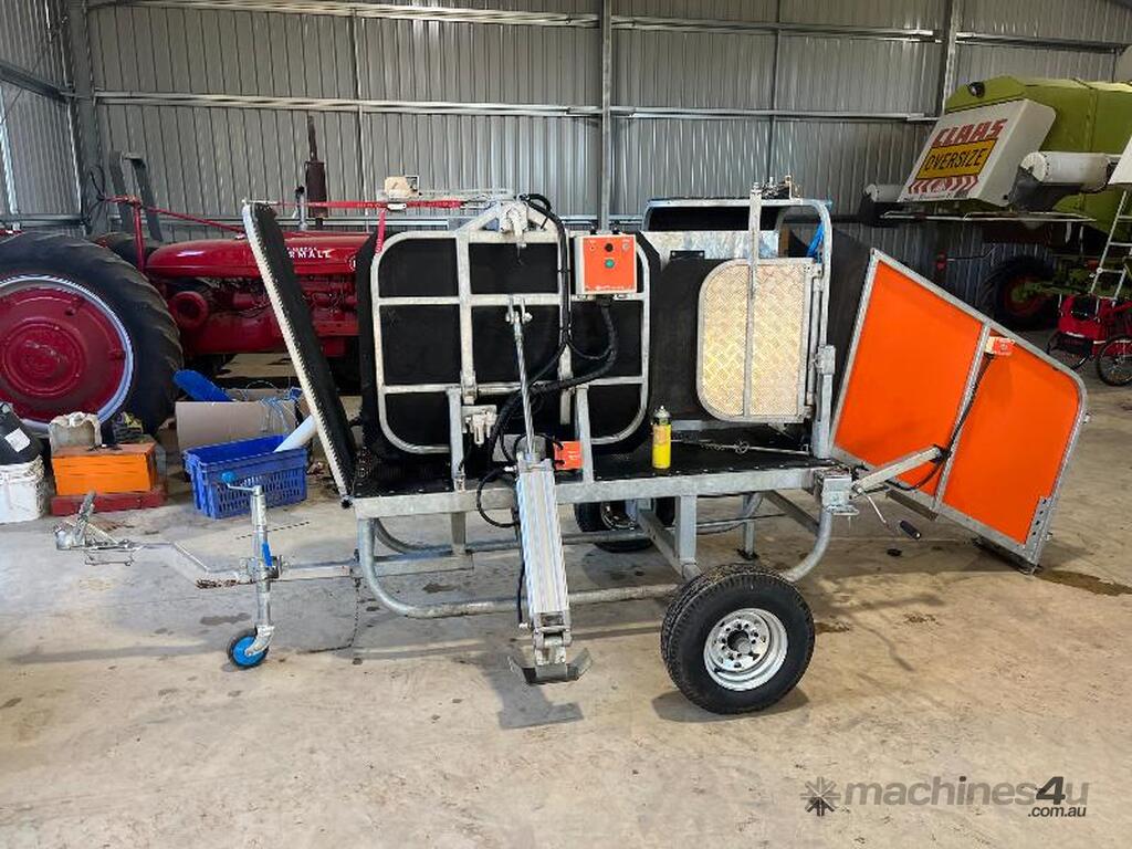 Gallagher Newmatic sheep handler With crutching side lay and crutching head flap Comes with shearing plate post and flexi down tube to suit Heiniger evo plant Comes with Draw bar and transfer wheels as pictured Minimal use as vendor moved away from merinos