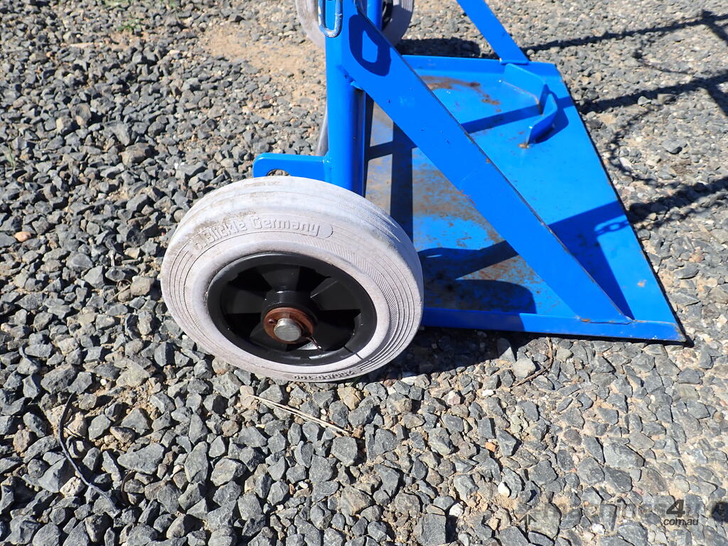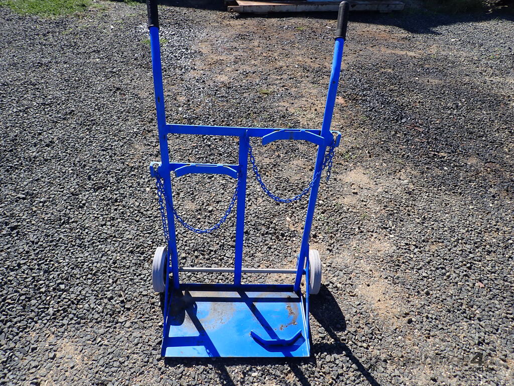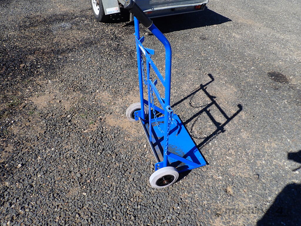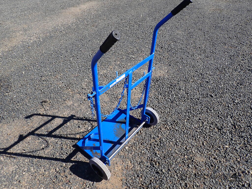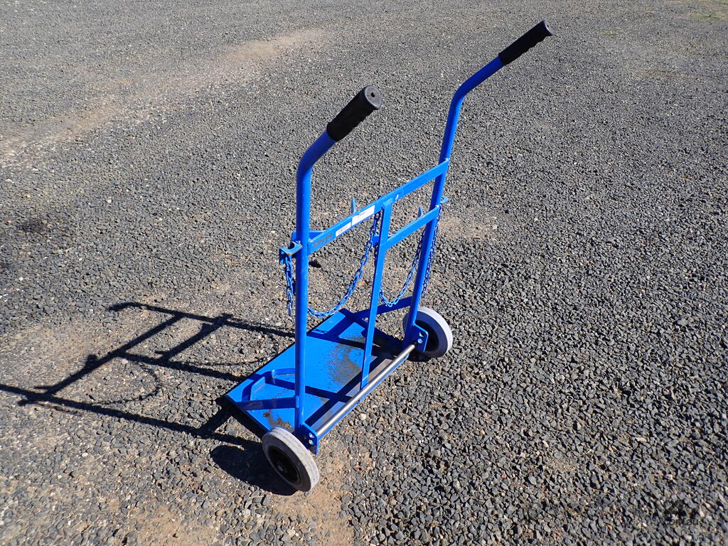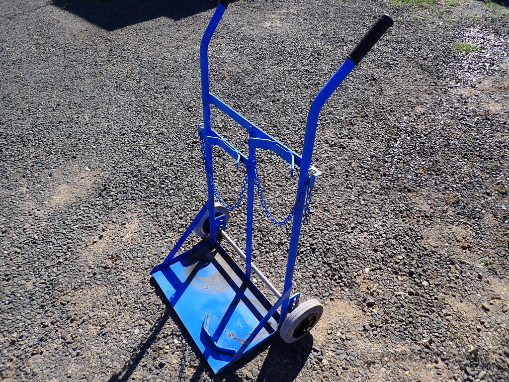 Gas bottle trolleys, Custom Trolleys brand, model MT260, Oxygen/acetylene G size bottle trolleys, Australian made, with adjustable chains for securing bottles, non marking puncture proof tyres, 24 used units available price each $77 inc gst, good solid units.