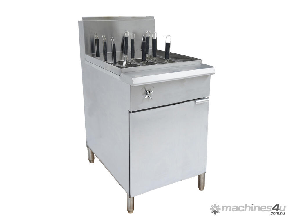 Gasmax V Pan LPG 9 Baskets Pasta and Noodle Cooker - PC150-9LPG Key Features Gas Type: LPG Stainless steel front and sides 34L Water Capacity 304 stainless steel tank Thermostat control ranges from 93°C to 204°C Open Stainless steel fryer pot with cold zone Standby Stainless steel pilot for easy start 6-inch stainless steel leg Millivolt control valve Prompt response thermostat ensures fast temperature recovery 232°C high limit for safety One 1/4” full port drain valve Open pot design features easy cleaning Stainless steel hanger plate at the back Nine Ø 125mm x 132mm Baskets 1?2 inch NPT rear gas connection Front-positioned water inlet Water purifying overflow system to remove excessive starch 2 Years Parts & Labour Plus 2 Years Parts Only Warranty When Products Registered Within 14 Days Of Invoice Depth: 860 mm | Width: 571 mm | Height: 1293 mm | Power: 190 MJ/h | Net Weight: 101 | Price: $5599 | Manufacturer: Gasmax | Warranty: 2 Years Parts & Labour Plus 2 Years Parts Only Warranty When Products Registered Within 14 Days Of Invoice