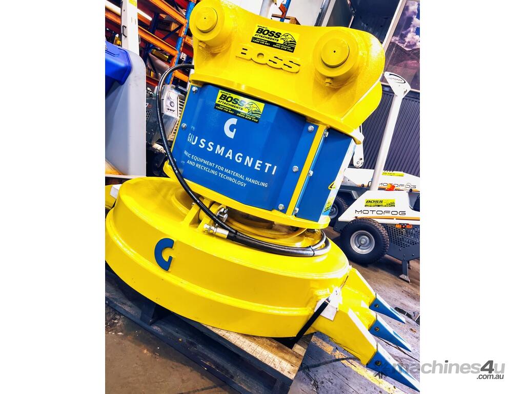 * Multiple carrier attaching configurations, from traditional lifting chains to Mushroom tops or standard excavator quick coupler attachments. The Gauss hydraulic magnet will easily adapt to any host machine