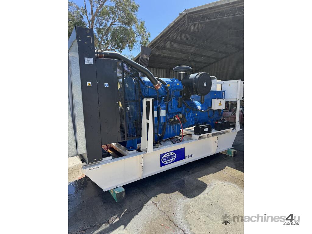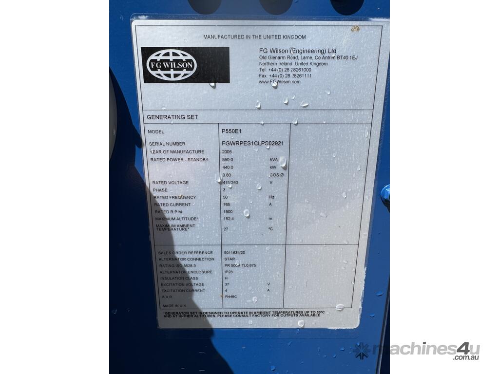 Generator 550 kva FG Wilson set with Caterpillar C18 engine, low 80 hours, excellent condition. This generator set has a fuel tank base, muffler, circuit breaker and controller mounted. We have load tested this unit under full load for 2 hours and it ran extremely well. Ready to use, we can assist with transport Australia wide.