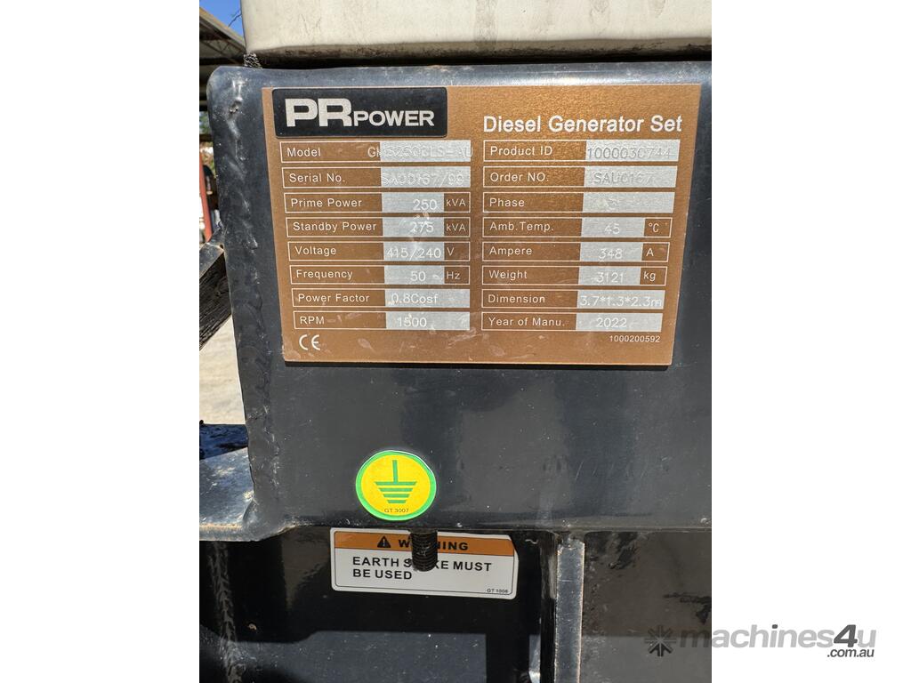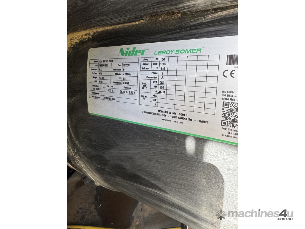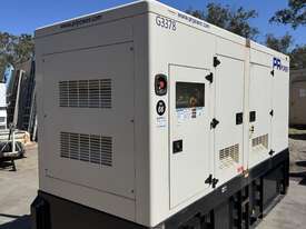 Generator Cummins 275 kva with 900 hours showing, load tested and ready to use. Set comes with block heater, battery charger, controller, circuit breaker, muffler and fuel tank base all mounted into a sound reduced canopy.