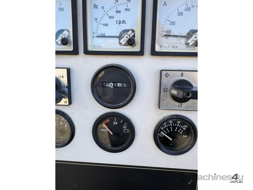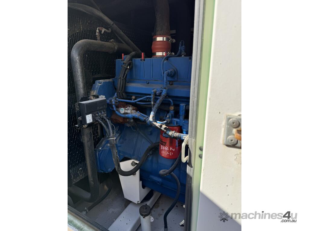 Generator FG Wilson 275kva with 3000 hours showing. Fuel tank base, muffler, circuit breaker and controller mounted in a sound reduced canopy. This set has been load tested and is ready to go.