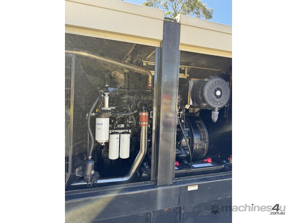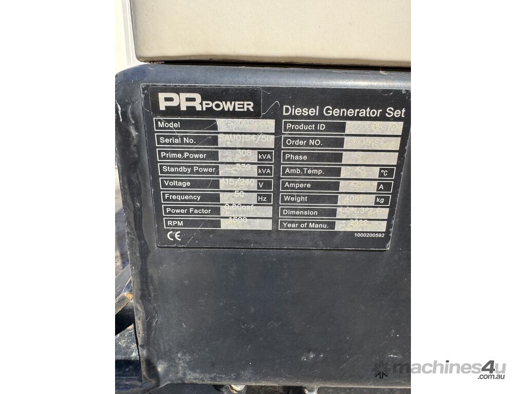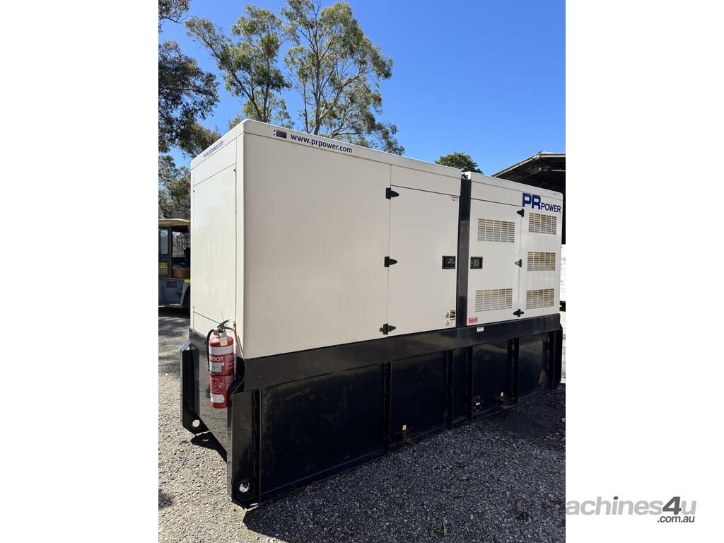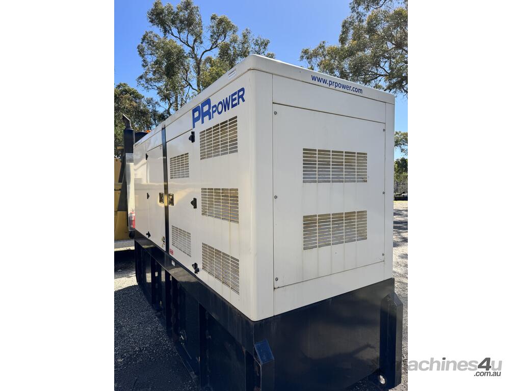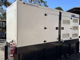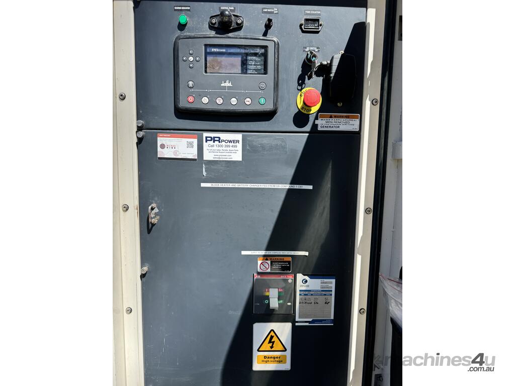 Generator Perkins 340 kva with 6400 hours showing, load tested and ready to go. Set comes with controller, circuit breaker, block heater, battery charger, muffler and fuel tank base mounted into a sound reduced canopy.