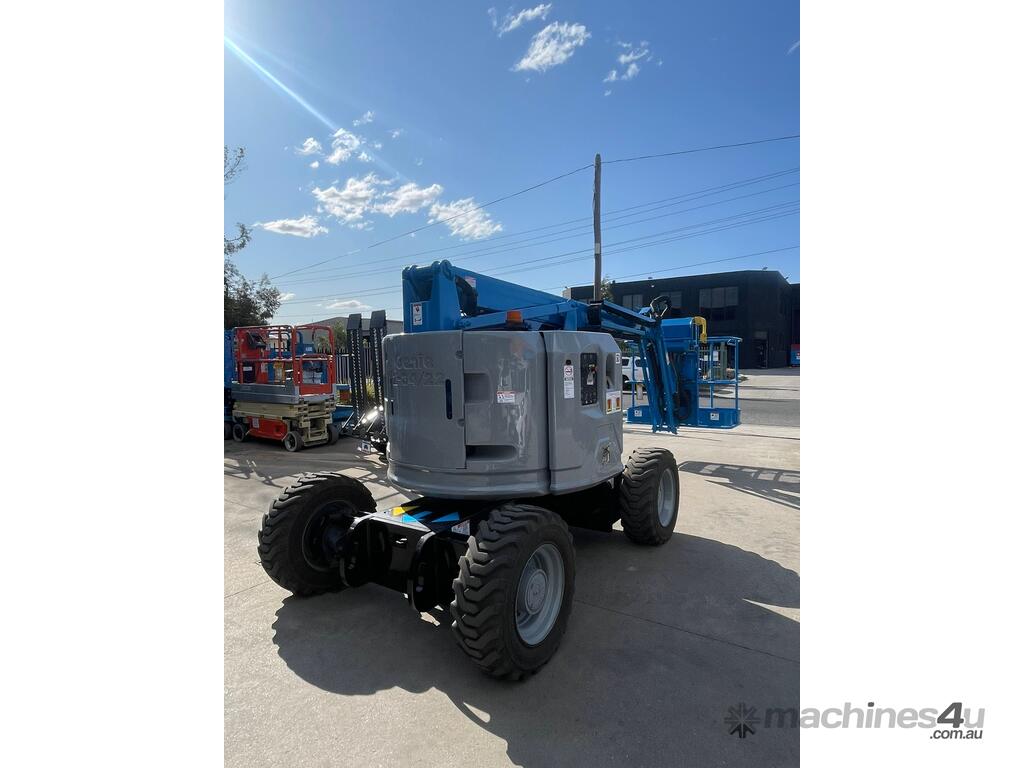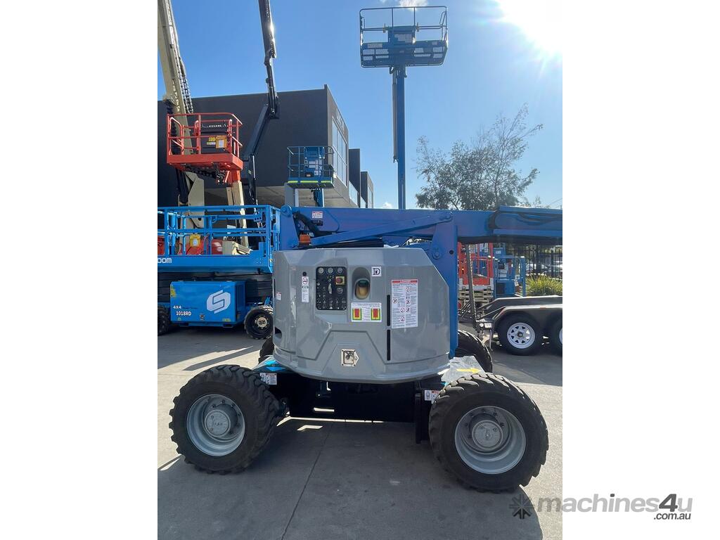 This articulating boom lift offers a quiet, emission-free operation. With this narrow electric lift, operators can easily drive through standard double doorways, work close to buildings or around obstacles and access overhead work from aisles or other congested areas.