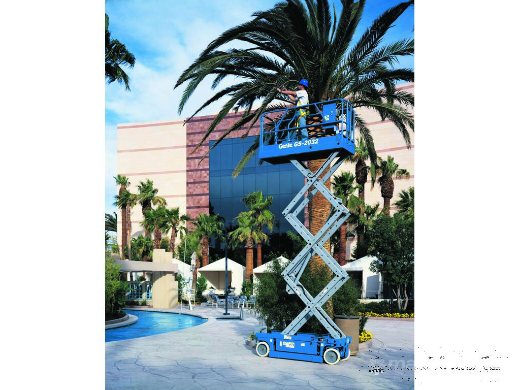 The Genie GS-2032 is a compact, self-propelled electric scissor lift built for efficient and safe indoor use. With a platform height of 6.1 m and a working height of 8.1 m, it delivers precise vertical access for facility maintenance, construction, and installation work in tight spaces.