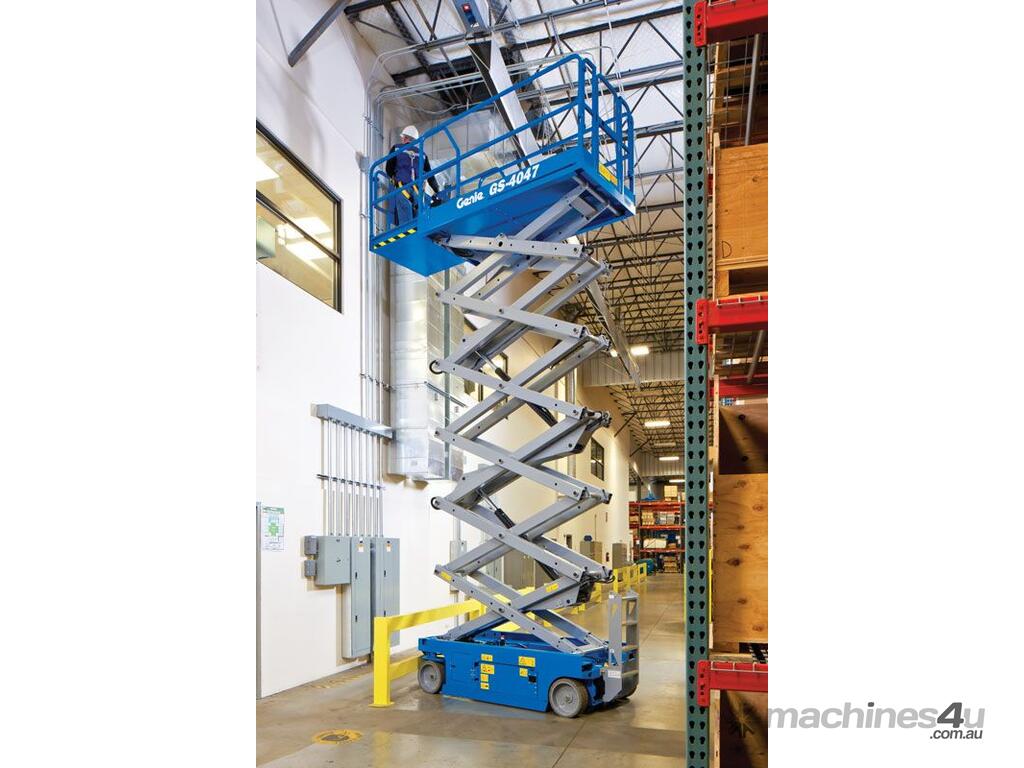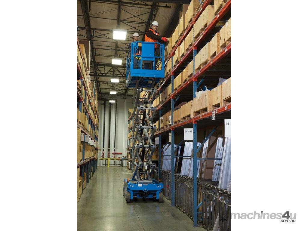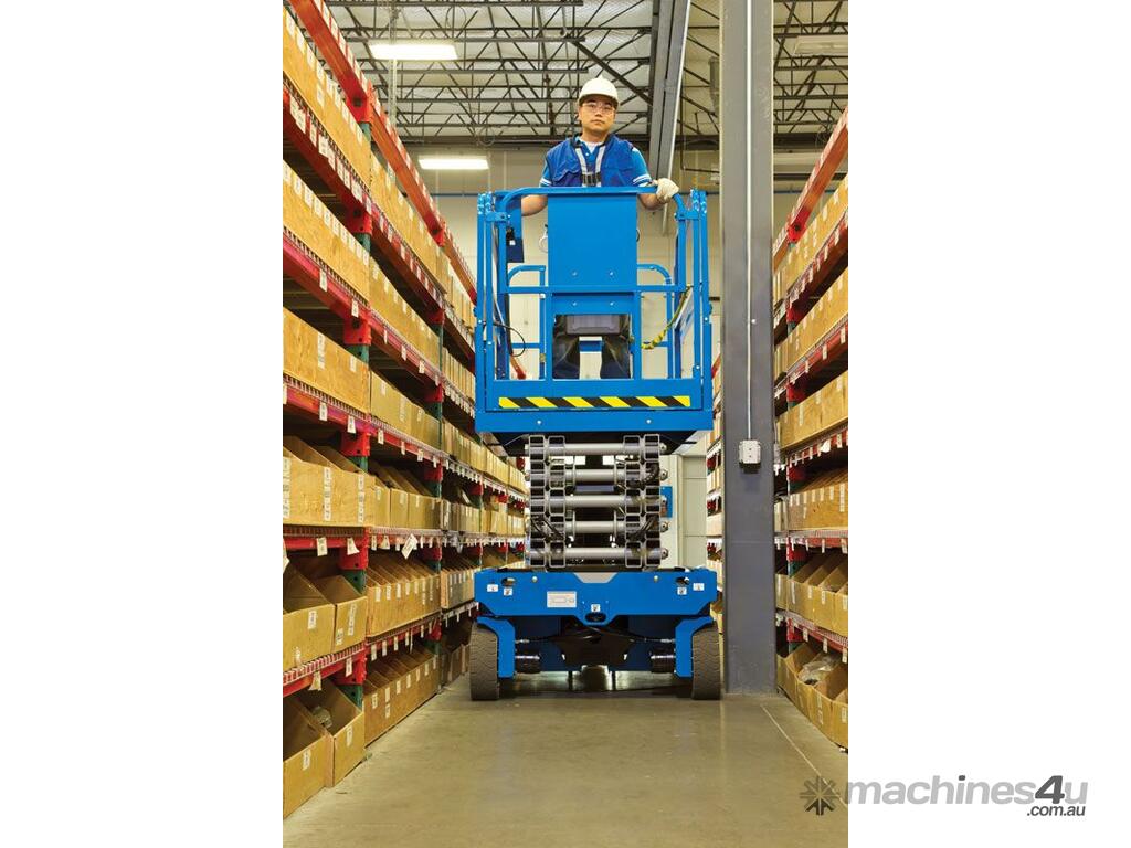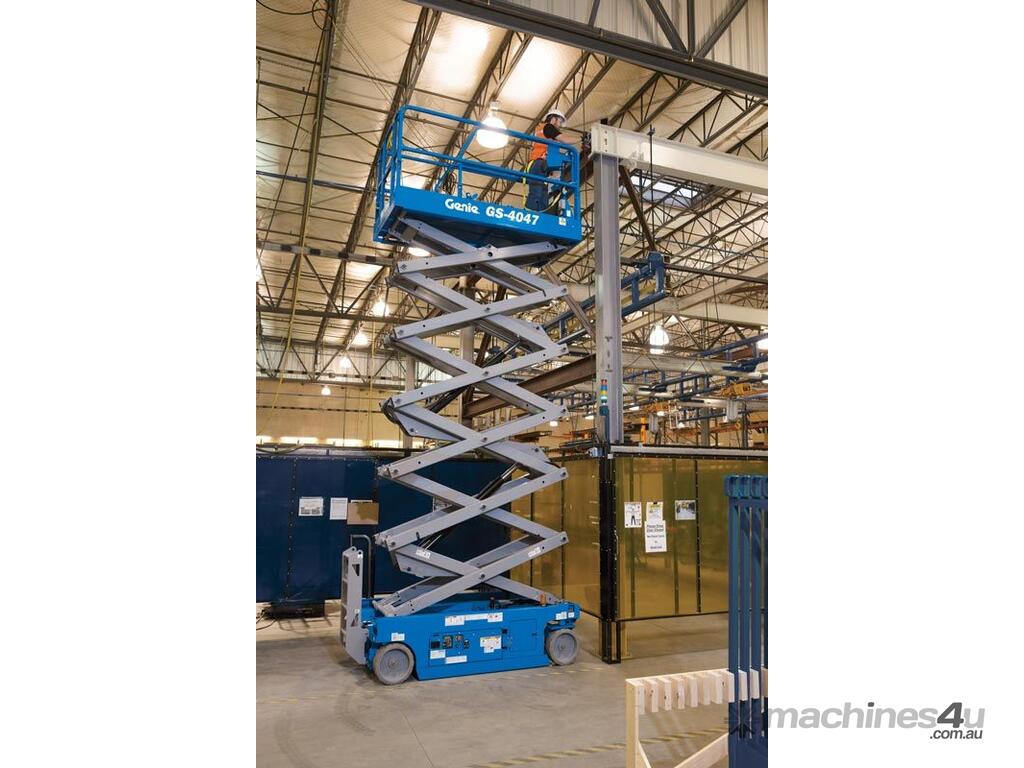 Increase productivity in high-rise spaces with the Genie® GS™-4046 E-Drive slab scissor lift. With a compact footprint ideal for work in narrow aisles, it features the state-of-the-art Genie AC electric E-Drive system for unmatched performance and runtime in high indoor and outdoor jobsites that require a significant amount of driving on level ground.