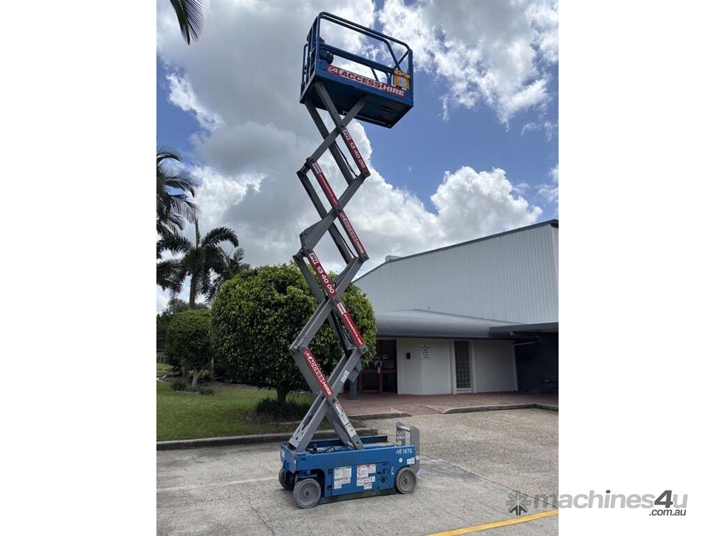 The Genie GS-1932 is a compact electric scissor lift built for safe and reliable indoor work. It offers a 7.79 m working height with a 227 kg lift capacity and a 0.91 m extension deck for extra reach. Its narrow 0.81 m width allows easy access through tight aisles and standard doorways. The lift delivers steady performance with proportional controls non-marking tyres and automatic pothole protection. The GS-1932 is well suited for maintenance tasks fit-outs and warehouse operations where stability and simple operation matter.