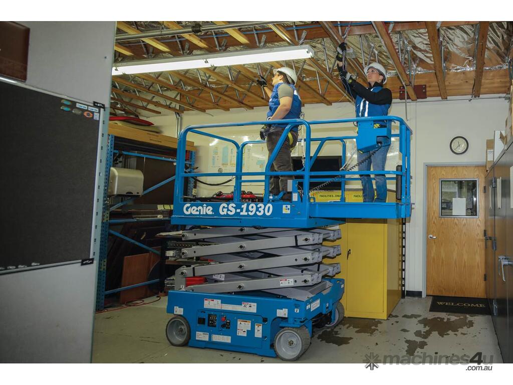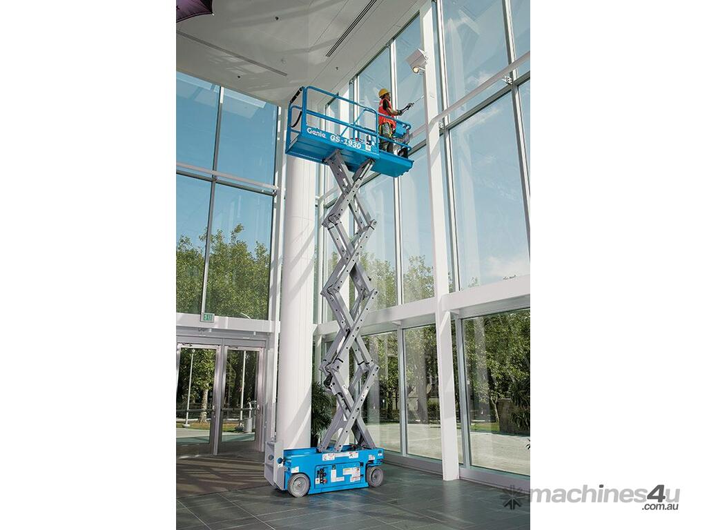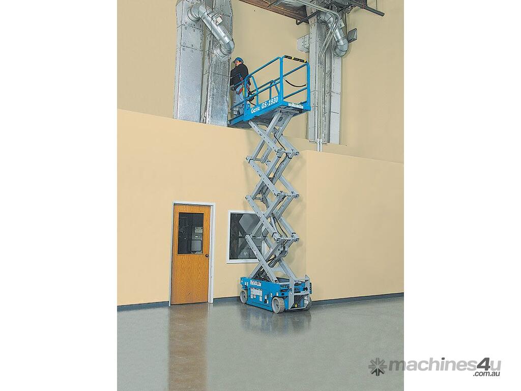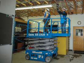 The Genie® GS™-1932 slab scissor lifts boast quiet electric operation and are ideal for indoor and outdoor applications in tight spaces on level surfaces. Electrically-powered, they are available with Genie® AC E-Drive or hydraulic drive configuration.