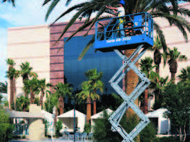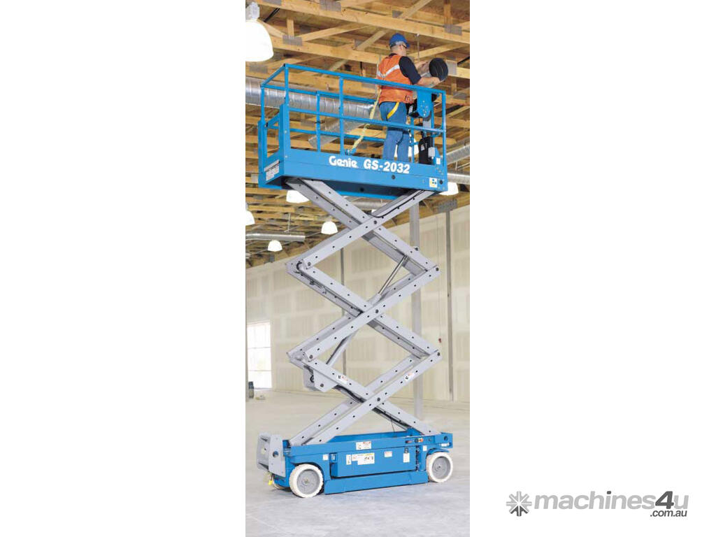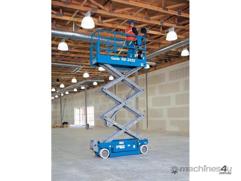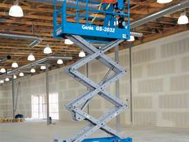 The Genie GS-2032 is a compact, self-propelled electric scissor lift built for efficient and safe indoor use. With a platform height of 6.1 m and a working height of 8.1 m, it delivers precise vertical access for facility maintenance, construction, and installation work in tight spaces.