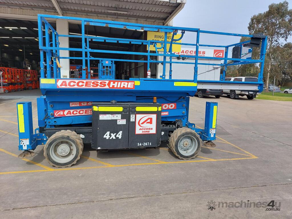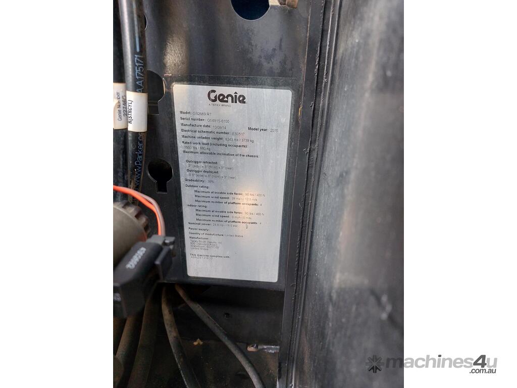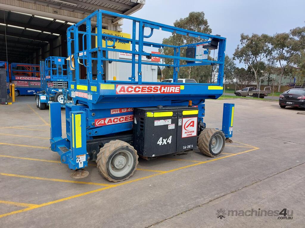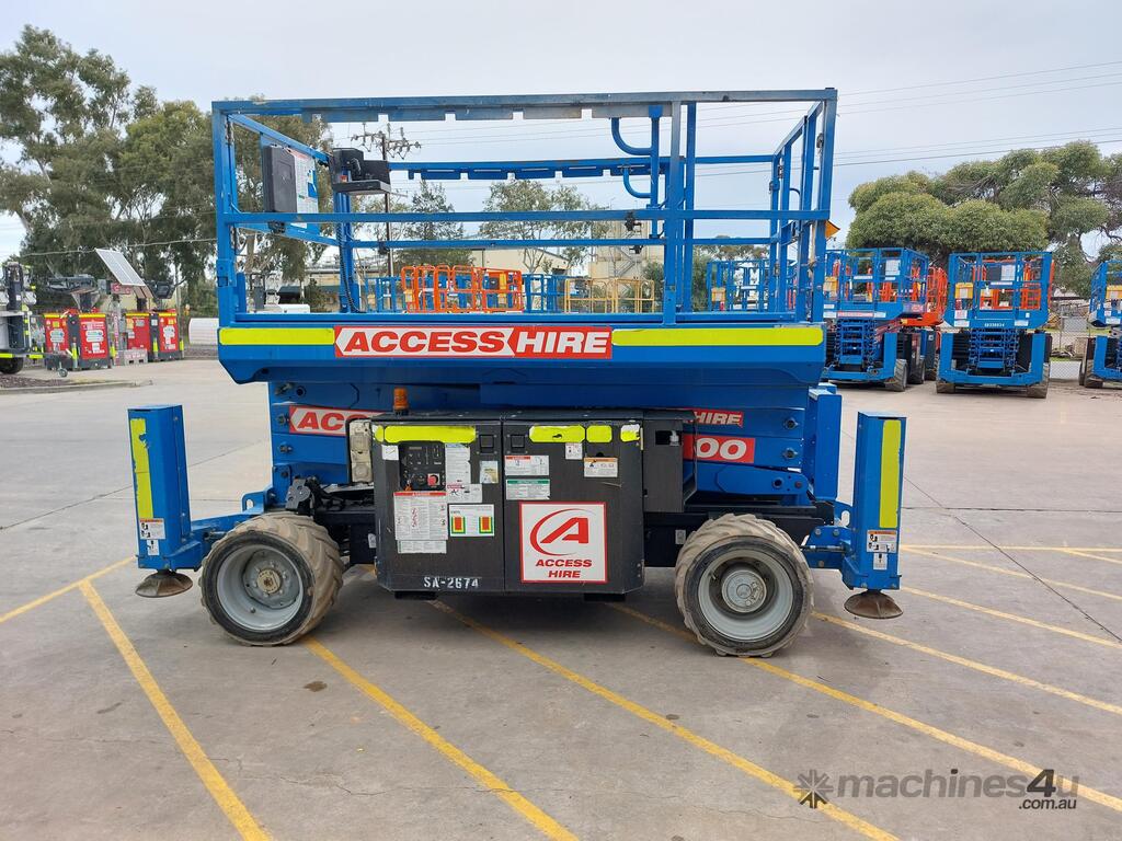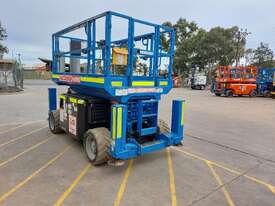 The Genie GS2669RT, is a 2015 diesel-powered rough terrain scissor lift built for productivity and reliability on outdoor job sites. With a platform height of 25 ft 3 in (7.70 m) and a working height of 31 ft 3 in (9.70 m), it delivers a 680 kg lift capacity, supporting up to four occupants with tools.