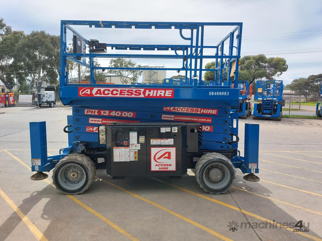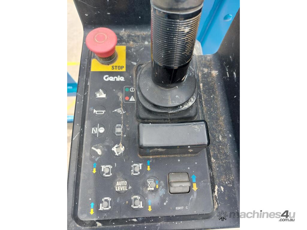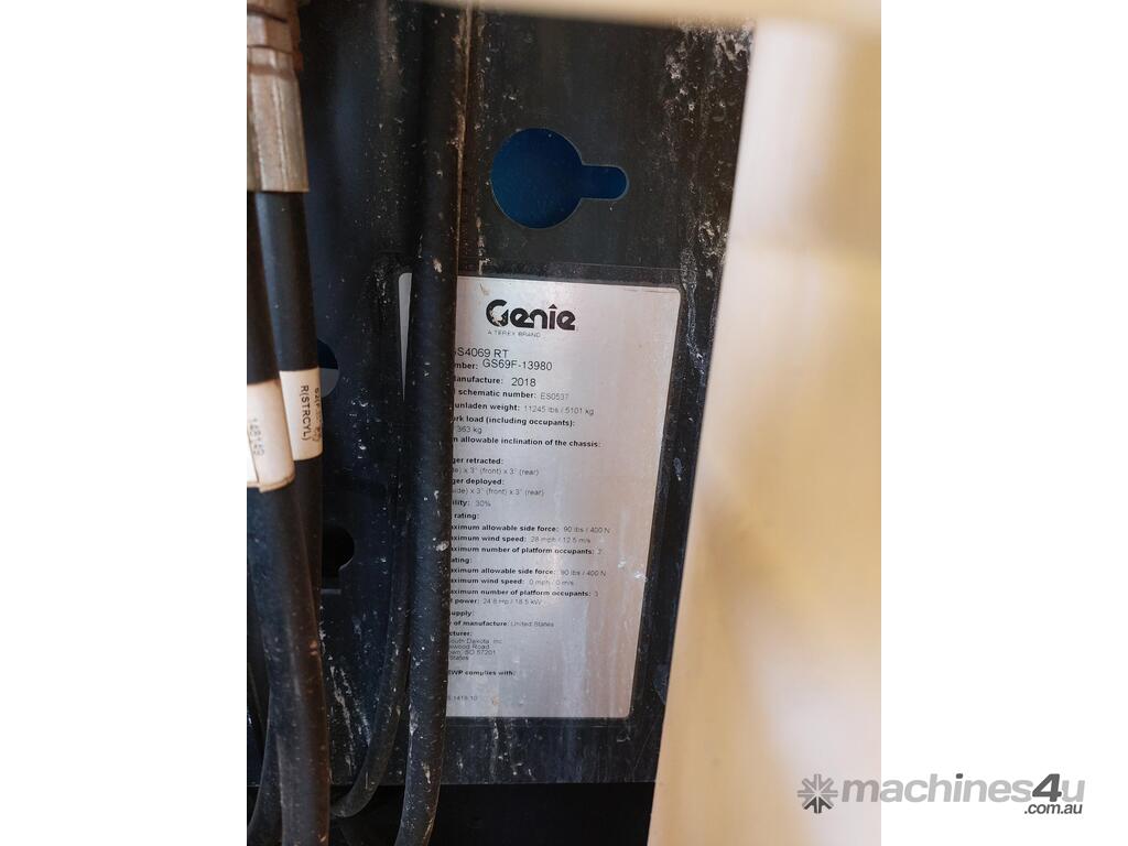 The Genie GS4069RT, is a diesel rough-terrain scissor lift with a platform height of 40 ft (12.19 m) and a working height of 46 ft (14.19 m). It delivers a 363 kg lift capacity for multiple workers and tools. Powered by a 24.8 hp Kubota D1105 diesel, with full-time 4WD, oscillating axle, and automatic leveling outriggers, it’s built for productive, stable work on uneven job sites. The 2.79 × 1.60 m platform with a 1.52 m slide-out deck provides ample workspace. Operating weight: 5,078 kg.