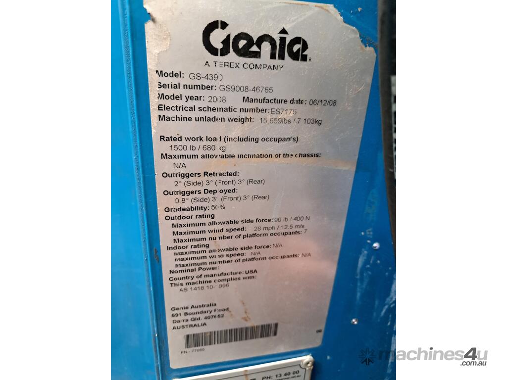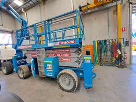 The Genie GS-4390 RT is a 43 ft diesel-powered rough-terrain scissor lift engineered for demanding outdoor work. With a maximum working height of 15.11 m and a platform height of 13.11 m, it provides exceptional vertical access and stability across uneven job sites.