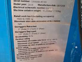 Built for productivity, the GS-4390 RT features a wide double-deck platform measuring 5.64 m × 1.83 m (extended) with a 680 kg lift capacity, accommodating up to 7 occupants. The machine’s 4 WD system and positive traction control deliver outstanding performance on rough ground, while its 40 % gradeability ensures reliable climbing power.