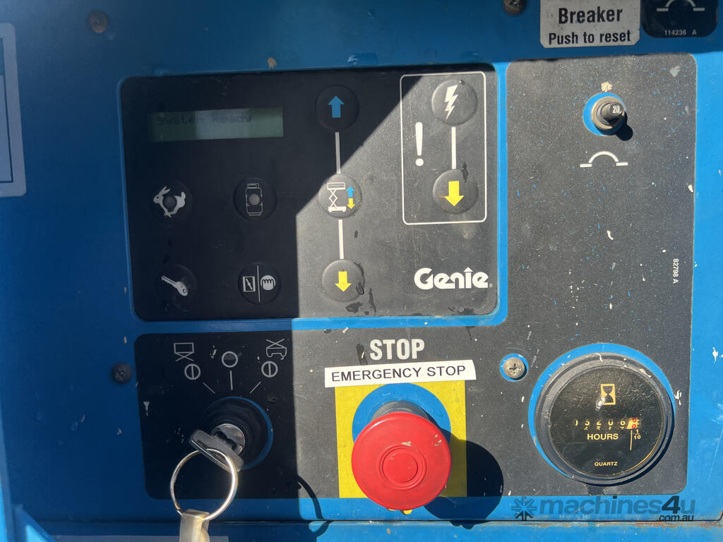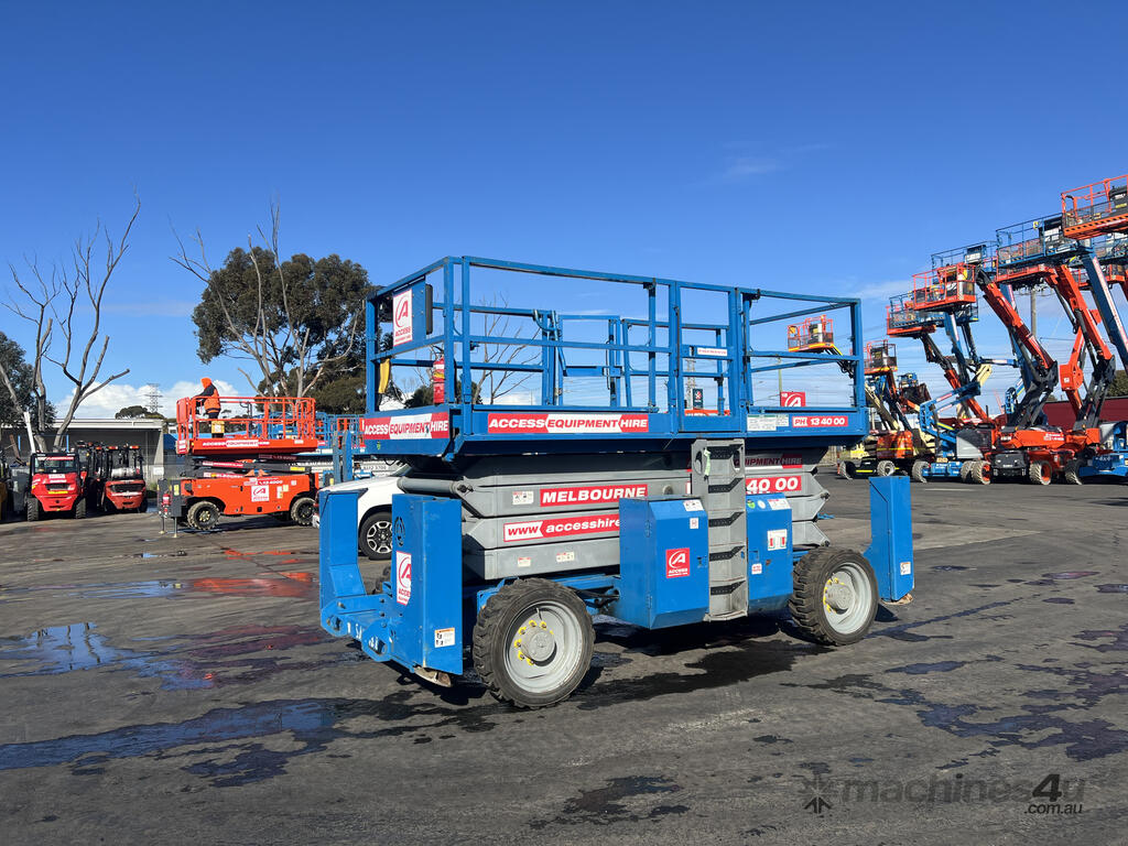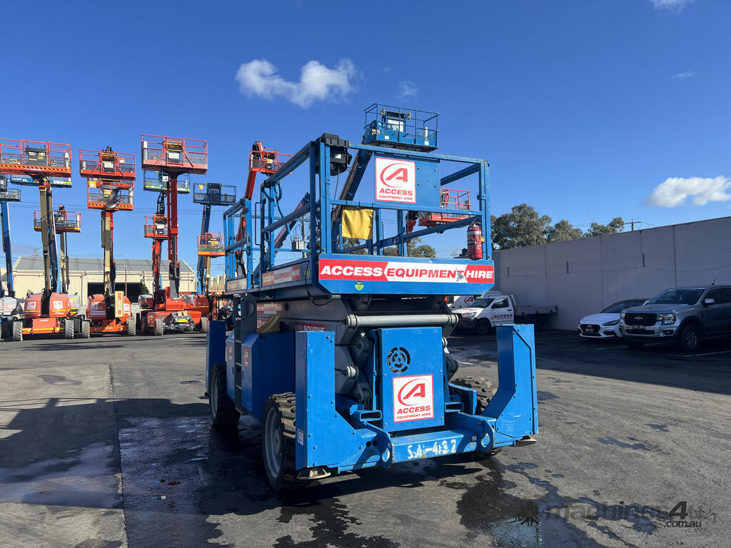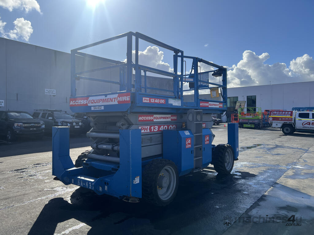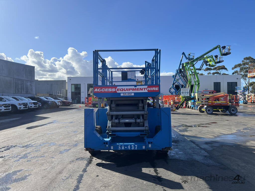 The Genie GS4390RT is a rugged 43 ft diesel scissor lift designed for demanding outdoor worksites. With a platform height of 43 ft (13.11 m) and a working height of 49 ft (15.11 m), it delivers an impressive 680 kg lift capacity, accommodating up to 7 occupants. This unit comes equipped with a full-time 4WD system, automatic hydraulic outriggers, and dual slide-out platform extensions (5 ft front, 4 ft rear) for added reach and workspace. Powered by a 48 hp Deutz D2011L03i diesel engine, the GS4390RT is engineered for productivity, stability, and reliable performance on uneven terrain.