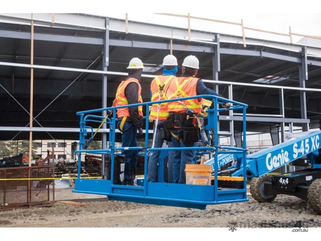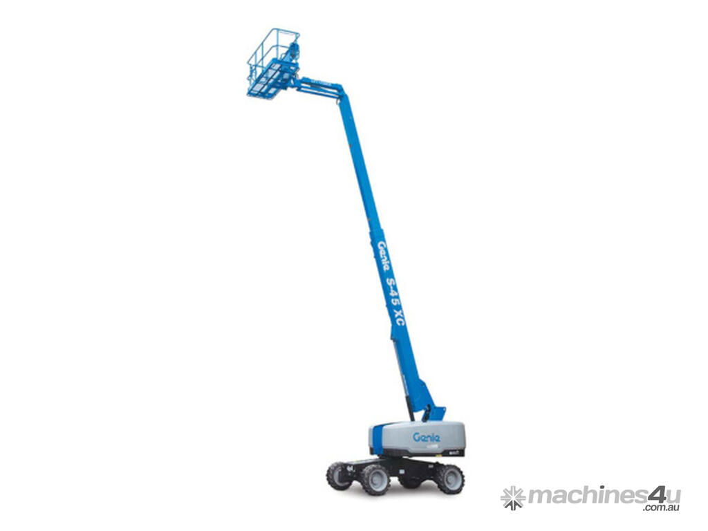 The Genie® S-45 XC™ telescopic boom is engineered to work in more applications that require higher capacities. With industry-leading dual lift capacity — 300 kg (660 lb) / 454 kg (1,000 lb) — a smooth operating envelope, this new XC boom lift is a perfect fit for your customers’ heavy lifting in construction, bridge inspections and maintenance, stadium and sports arena, gas and oil refineries, industrial, telecommunications and utility applications.