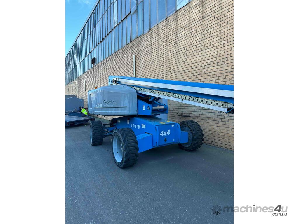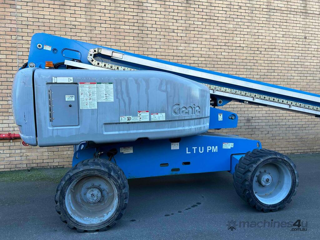 The Genie S65 telescopic boom has the best horizontal outreach than most of its counterparts out there in the market. It is recommended for congested work areas as its turntable allows a 360 continuous rotation with minimal tail swing. In addition to this, a terrain condition sensor detects the surface area and adjusts the axle position accordingly, giving more grip and control for the machine.
