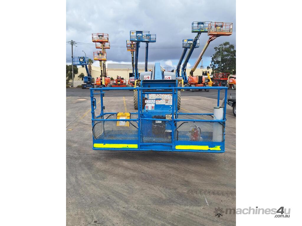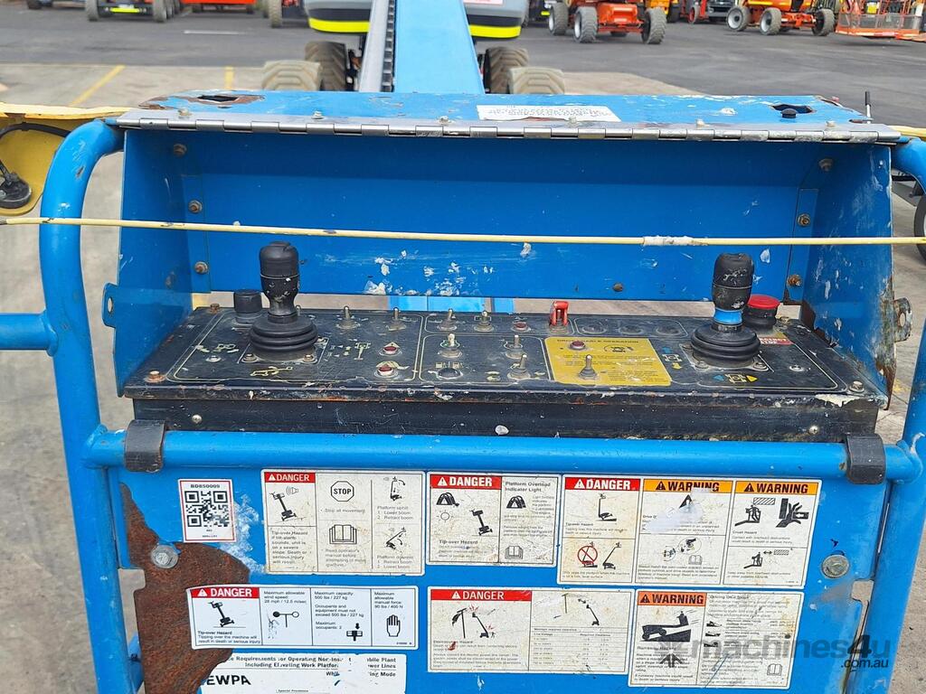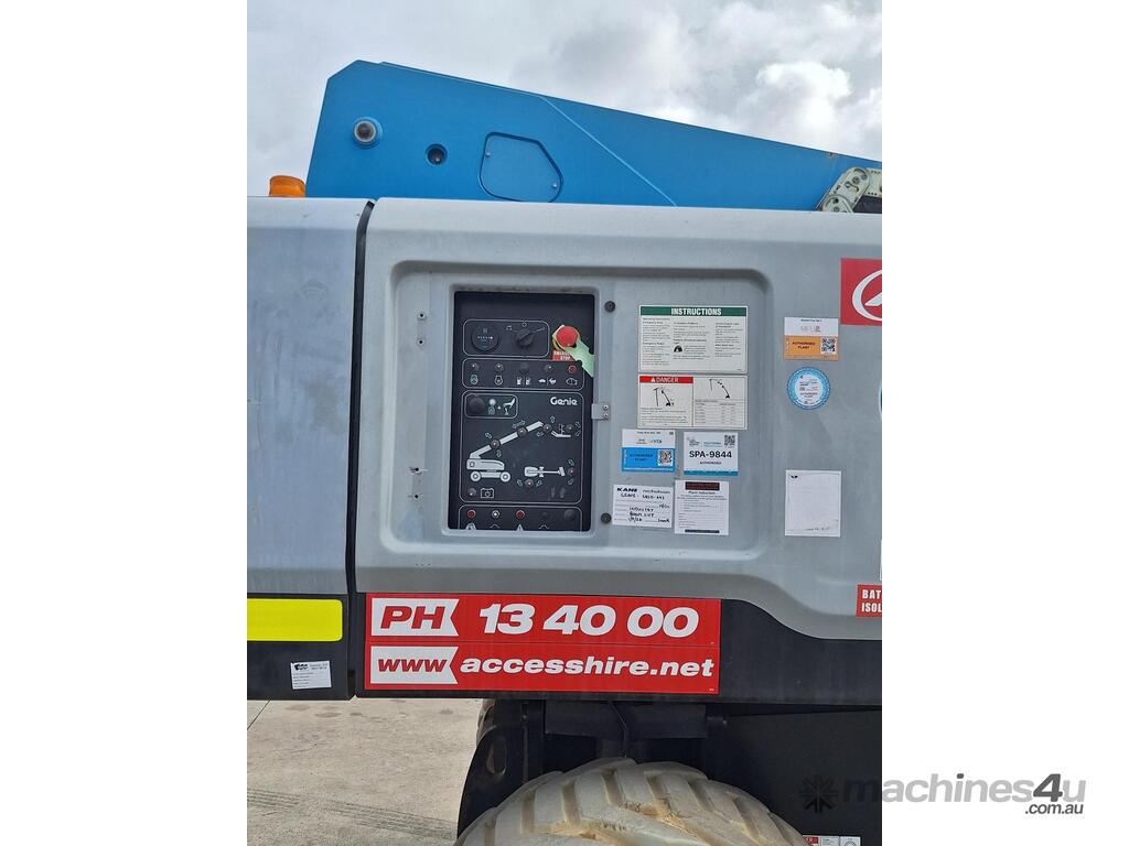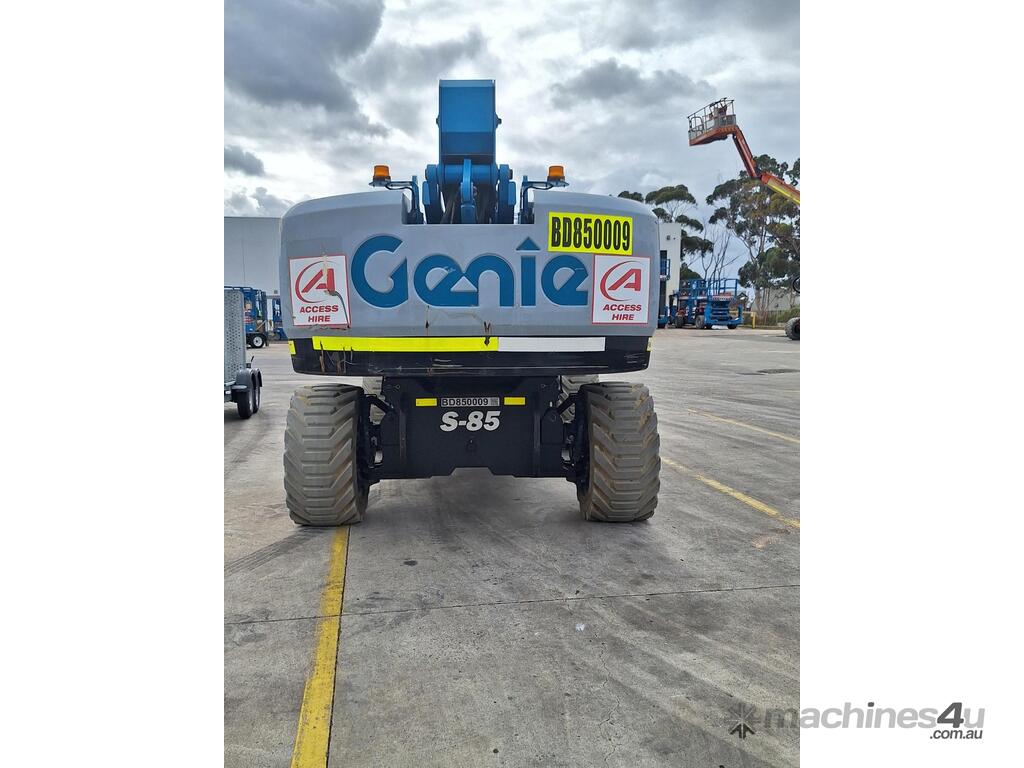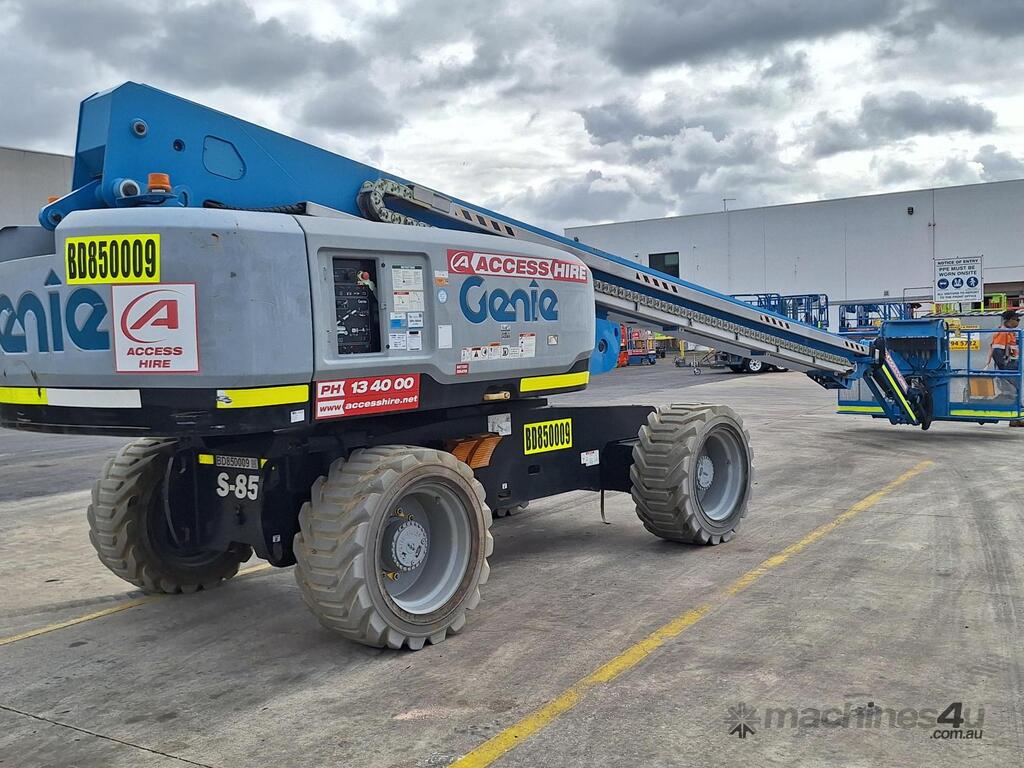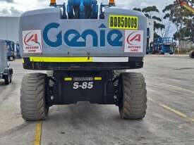 The Genie S85 is an 85 ft diesel telescopic boom lift designed for construction maintenance and industrial access. It provides a working height of 27.91 m (91 ft) and horizontal reach of 23.32 m (76 ft 6 in). Below ground reach is 2.90 m (9 ft 6 in). With 4WD traction and 360-degree continuous turntable rotation the S-85 delivers strong performance on rough terrain. Operating weight is 17,563 kg.