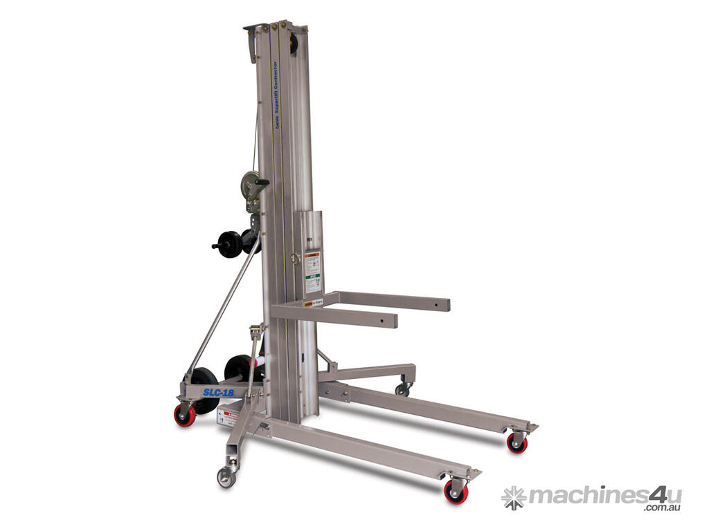 Well suited for industrial applications and HVAC installations, the Genie® Superlift Contractor® SLC™-24 lift comes standard with the captive stabilizer with patented “locking system” that provides additional lateral support for heavy loads. It can be easily operated by one person to lift, lower and move heavy loads.