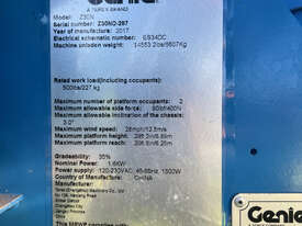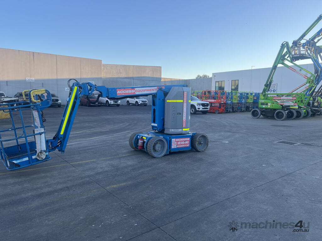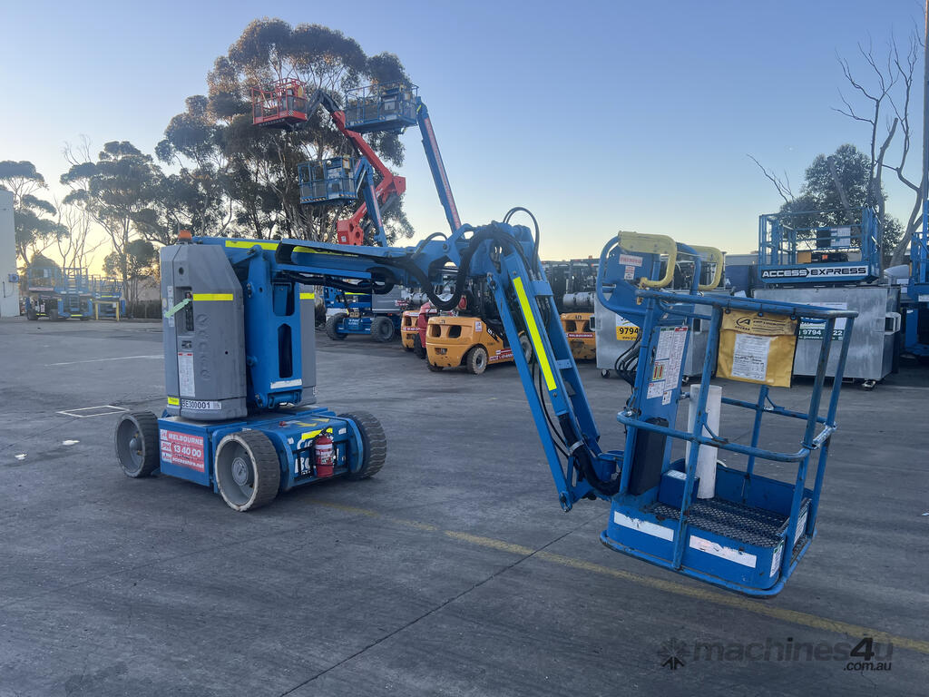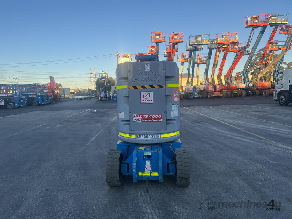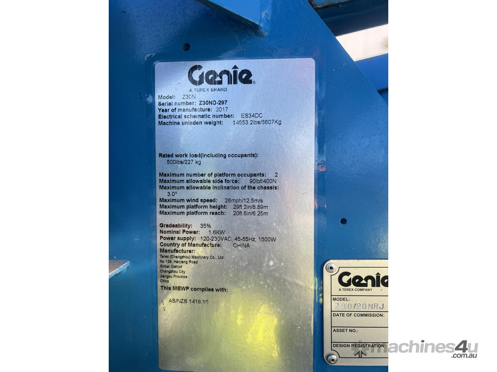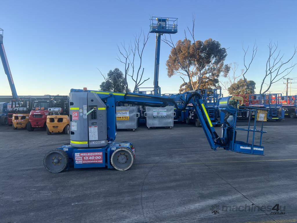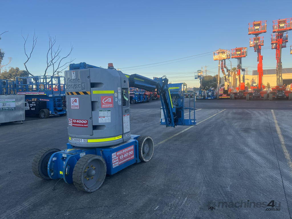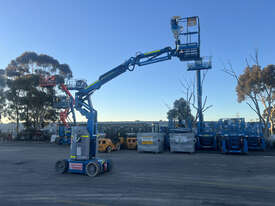 The Genie Z-30/20N RJ is a compact, self-propelled articulating boom lift with a platform height of 29ft 2in (8.89m) and working height up to 35ft 2in (10.89m). It features a 4ft rotating jib boom with 139° vertical and 180° horizontal rotation, allowing for exceptional maneuverability in tight spaces. With 227kg lift capacity, zero tailswing, and solid non-marking tyres, it’s ideal for indoor and sensitive flooring applications. Powered by an efficient 48V DC battery system with 2WD drive, it delivers reliable and quiet electric performance for facility work, installations, and maintenance.