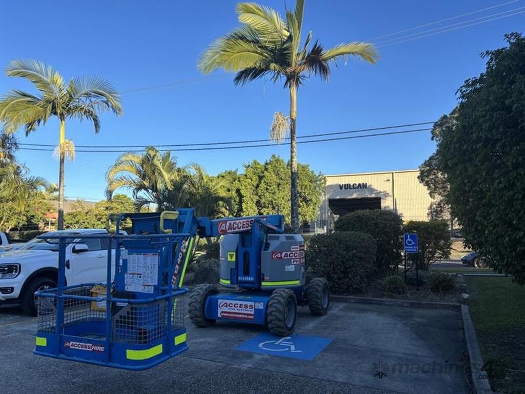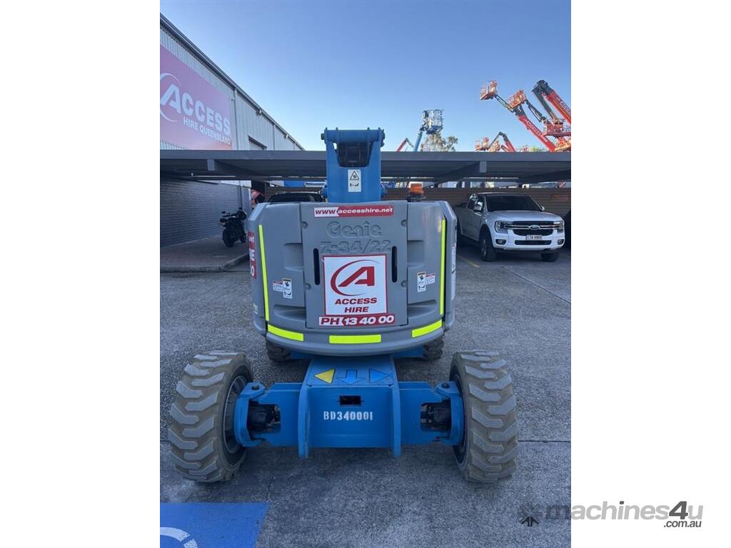Our Genie Z-34/22 IC is a compact diesel articulating boom lift designed for reliable performance in rugged outdoor conditions. With a platform height of 34ft 10in (10.62m) and a working height of 40ft 10in (12.62m), it delivers a horizontal outreach of 22ft 3in (6.78m) and an up-and-over clearance of 15ft (4.57m). Powered by a Kubota 26hp diesel engine, the Z-34/22 features zero tail swing, 4WD, and foam-filled rough terrain tyres. Its fully proportional controls, tight turning radius, and compact stowed dimensions make it ideal for confined work zones and uneven ground.