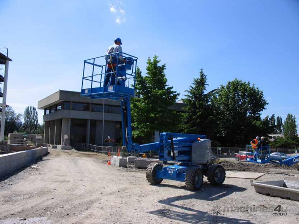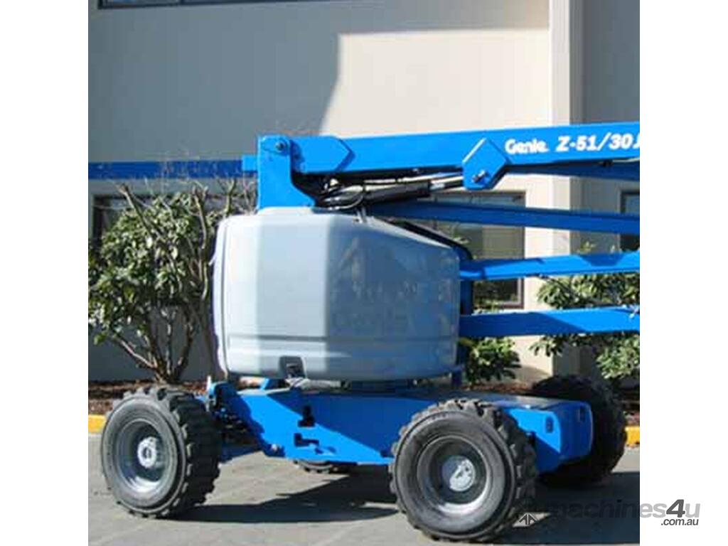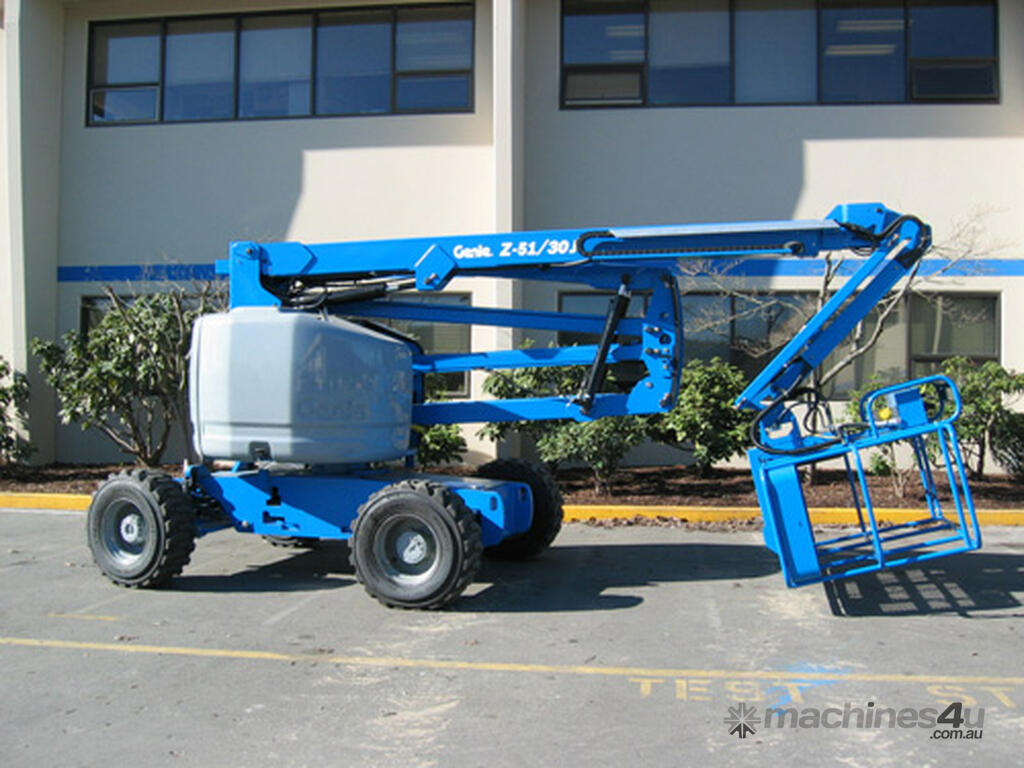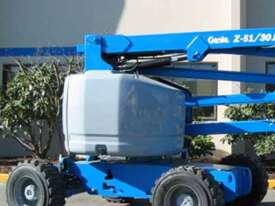 The Genie Z-51/30 RT is a 58ft diesel articulating boom lift built for construction, maintenance and industrial access work. It delivers a working height of 57ft 8in, horizontal outreach of 30ft 9in and up-and-over clearance of 24ft 3in with a 227kg platform capacity. With 4WD and an articulating jib, the Z-51/30 RT is well suited to rough terrain sites where you need reach and positioning. Maximum operating weight is 7,404kg.