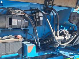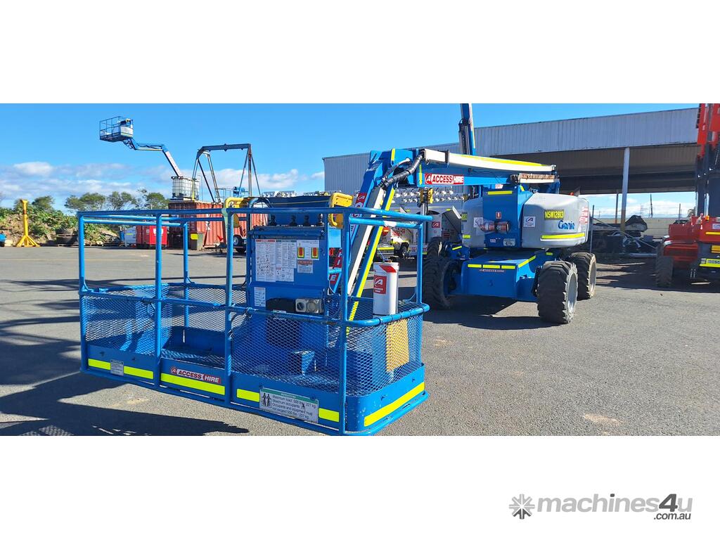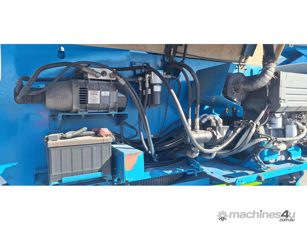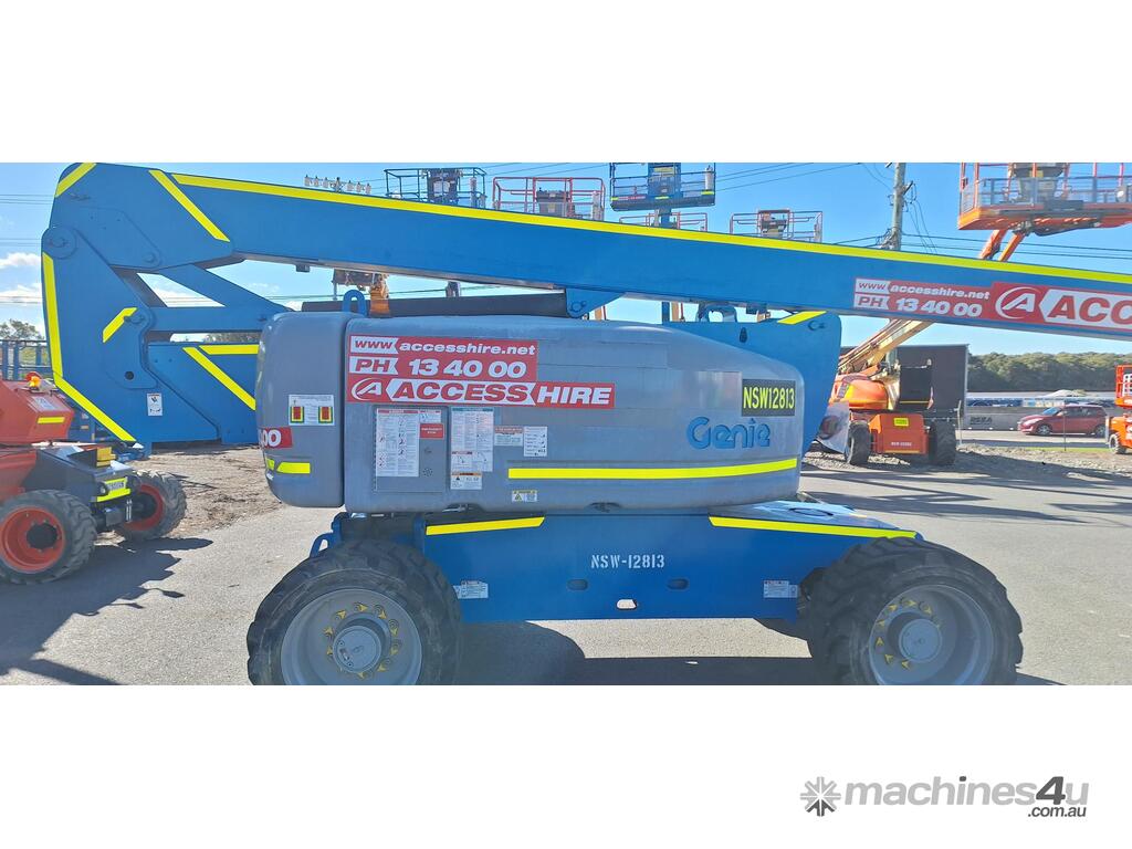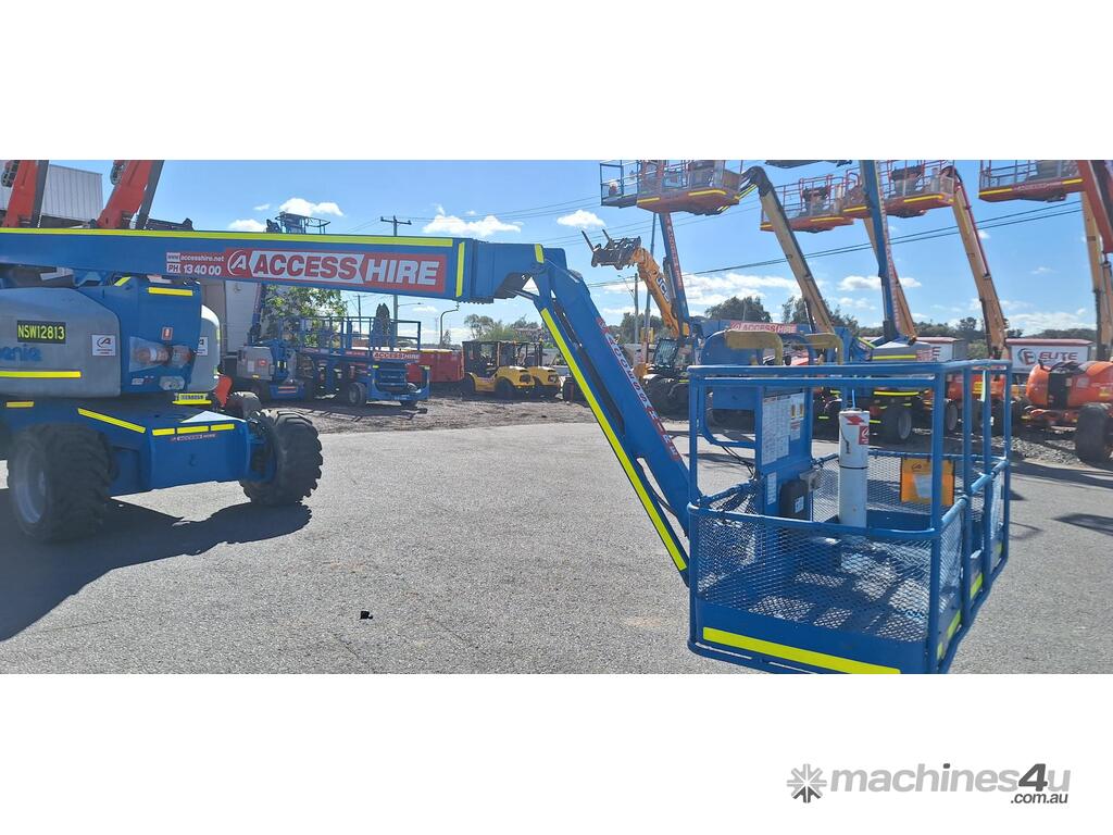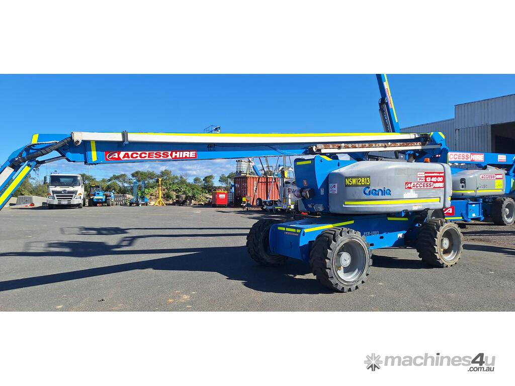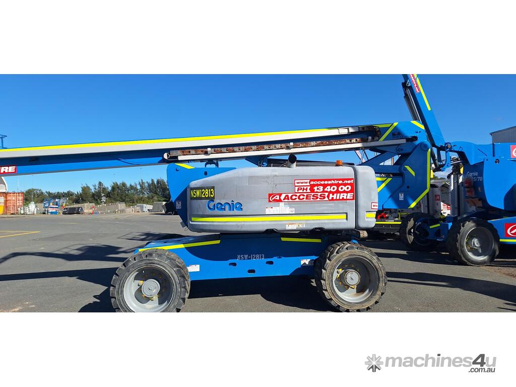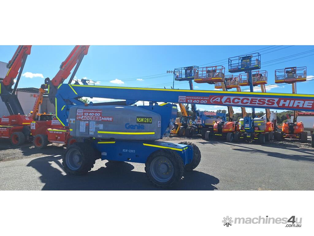 The Genie Z-80/60 is a high-reach diesel articulating boom lift engineered for heavy-duty outdoor applications. With a platform height of 78 ft (23.77 m) and a working height of 84 ft (25.77 m), it delivers exceptional horizontal outreach of 60 ft (18.29 m) and up-and-over clearance of 29 ft (8.83 m). Powered by a 78 hp Deutz diesel engine, it features 4WD, four steering modes (front, rear, crab, coordinated), full-time oscillating axles, and a 6 ft (1.83 m) jib with 135° vertical articulation. Full-time positive traction drive, foam-filled rough-terrain tyres, and proportional joystick controls ensure smooth, safe operation across demanding sites.