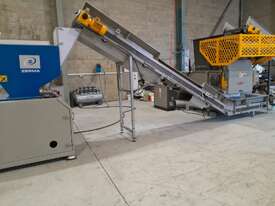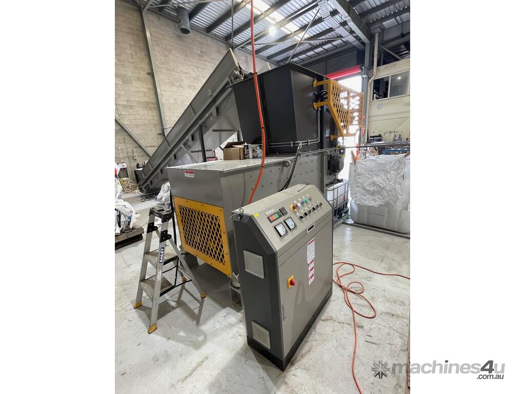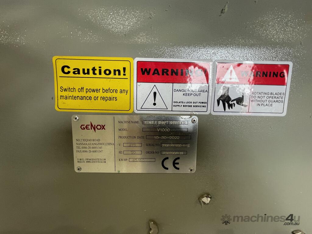 Genox V1000 Single Shaft Shredder – 2022 Model – 45kW (60HP) – Complete Line with Crammer & Conveyors