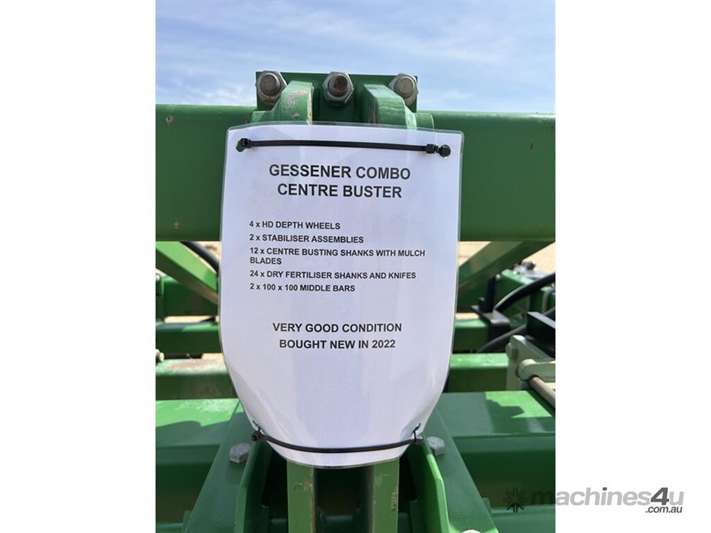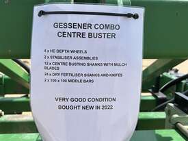 Gessner Combo Centre Buster. Bought new in 2022, 12 row unit, 4 x HD depth wheels, 2 x stabiliser assemblies, 12 x centre busting shanks with mulch blades, 24 x dry fertiliser shanks and knives, 2 x 100x100 middle bars. Unit it very good condition. Located at Wee Waa NSW.