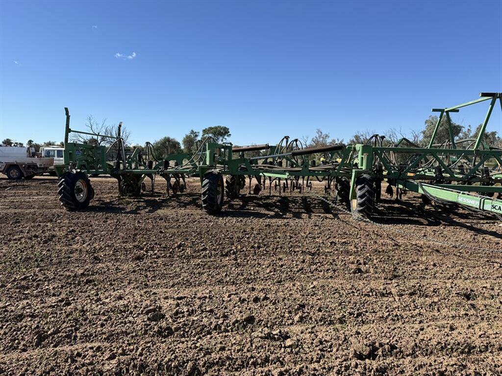 Gessner Scarimaster 500 Planter. 24m folding planter on 16-inch spacings, originally made for 10" spacing so can be moved around. Bar does have some parts to be sold with. And includes scarifier points and shanks. Located Mungindi QLD, available at MRE Auctions online sale.