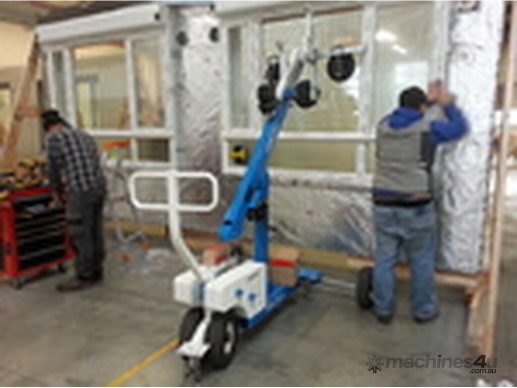 The Glass Robot GRM250 is an amazing piece of equipment. Three large suction cups can pick up a maximum capacity of 250Kg and it has a max lifting height of 2.45m. Easily pick up glass panels from the rack and rotate the glass sideways to pass through narrow aisles and doorways.