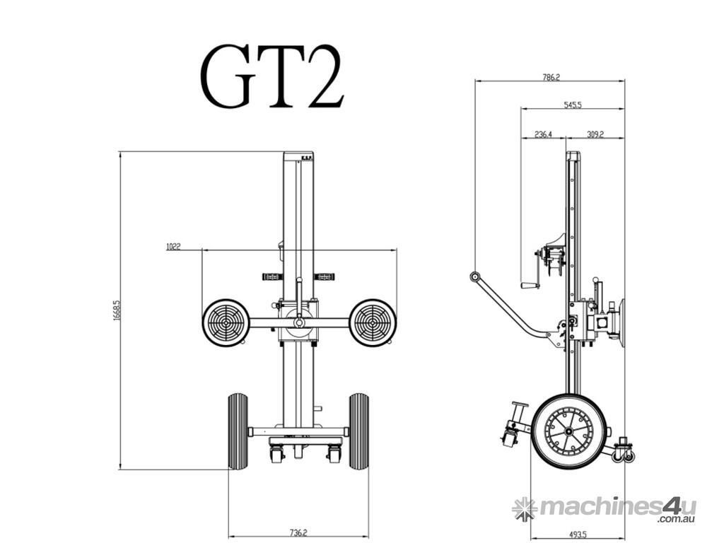 16`` puncture proof wheels for easy transportation on building sites or for manipulating glass through halls, corridors and rooms.