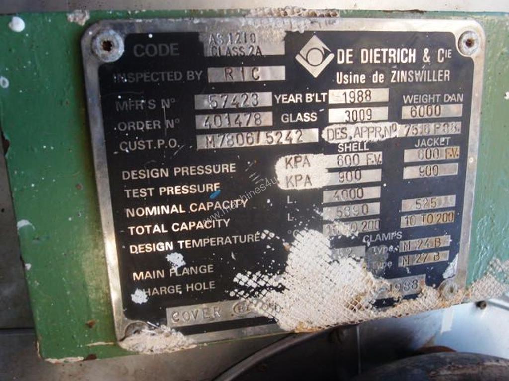 Pressure Vessel Tank (Glass Lined & Jacketed), Capacity: 4,000Lt, Dimension: 1900mm Dia x 1417mm H, Brand: De Dietrich