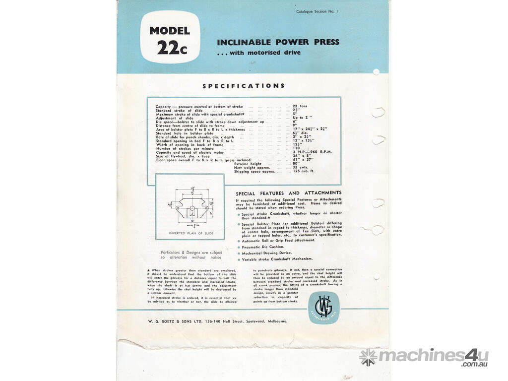 We have a Goetz 22C Inclinable C Frame Power Press for sale