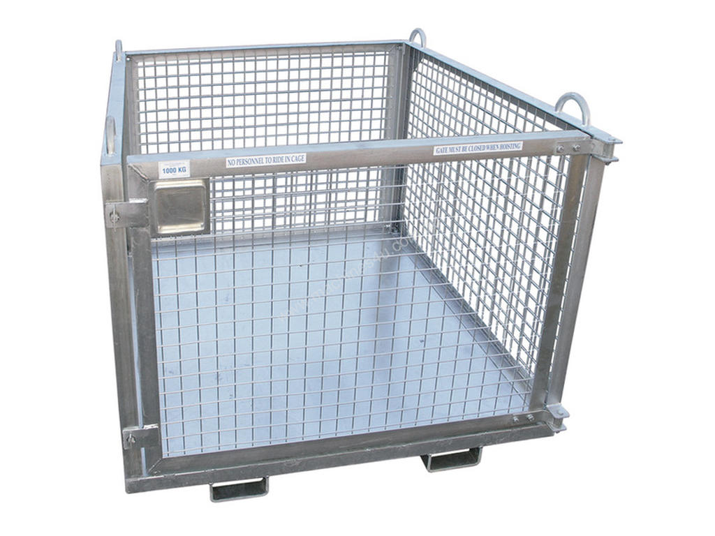 The Crane Goods Cage is designed to convey loose or palleted goods using either a Forklift or Crane.