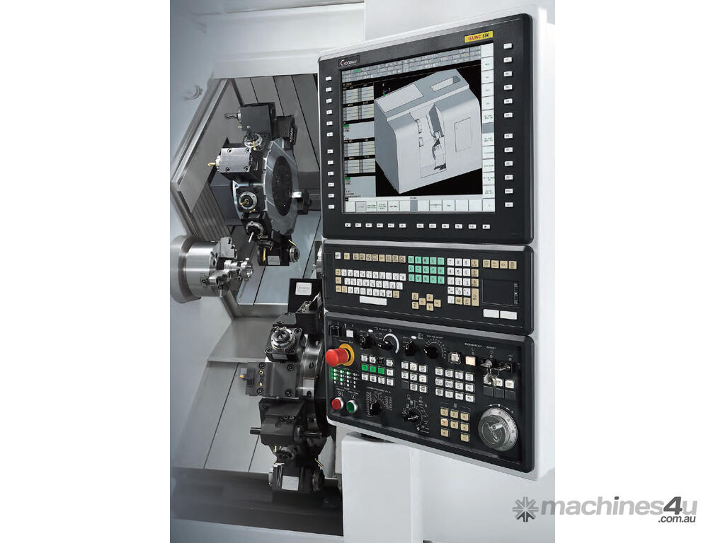 C/w Fanuc Control, Chip Conveyor, 2 x Renishaw Tool Setter, bar feed interface, oil skimmer. Optional – Live tools, Y axis, parts catcher, loading and unloading systems.