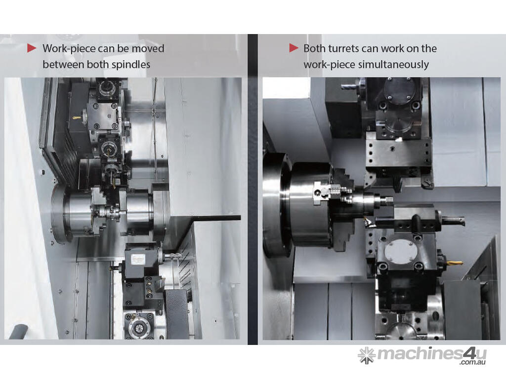 New twin spindle and twin turret combination, Upper and lower turret can be adjusted based on different machining requirements, Production capacity is 150 % larger than average models