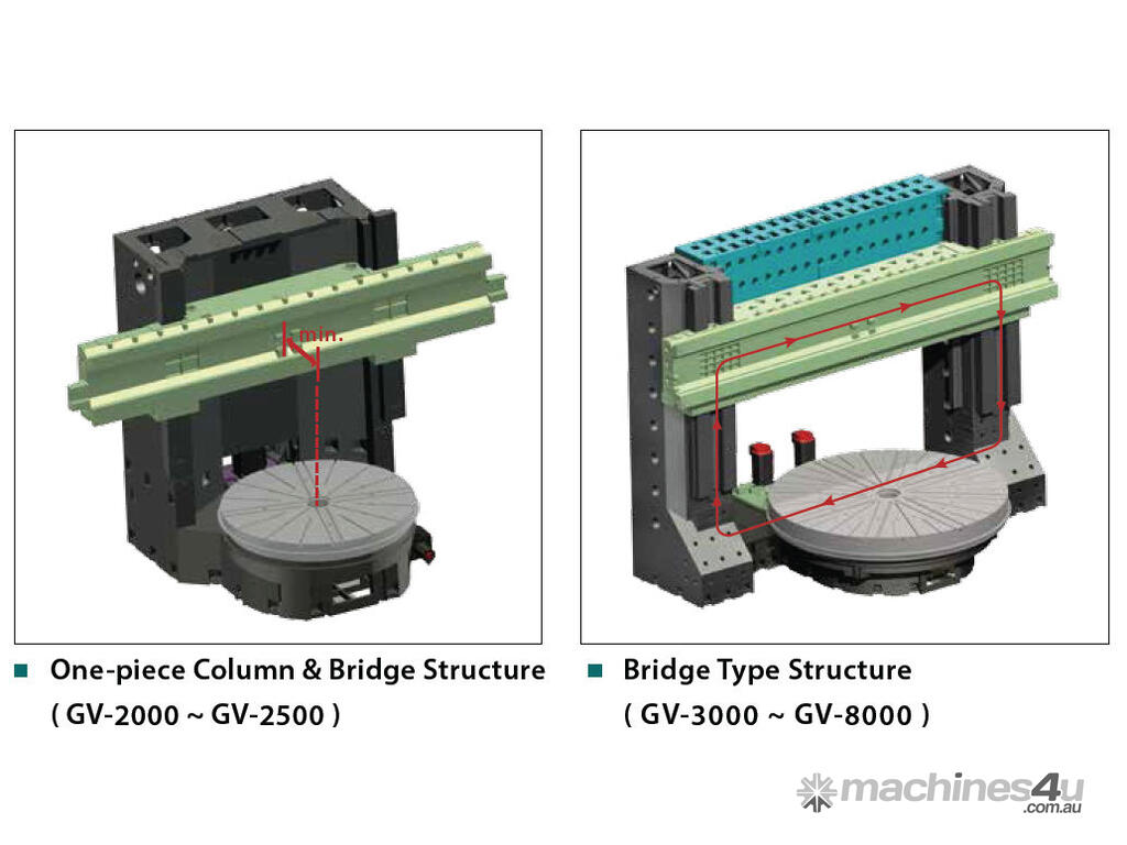 With leading technologies and high quality components, the SUPER GV CNC vertical turning center combines heavy-duty, high rigidity and super large machining range advantages to provide you with large sized, asymmetric work piece turning capabilities. The optimal reinforced structure of these series can maintain long term precision even if the table diameter is reached up to 8,000mm. Plus, with the optional dual ram or live tooling spindle and C-axis, all kinds of complex turning applications can be done easily, which can meet your needs for today and tomorrow.