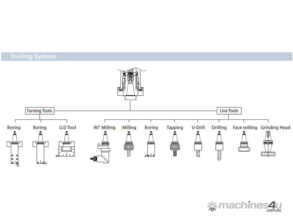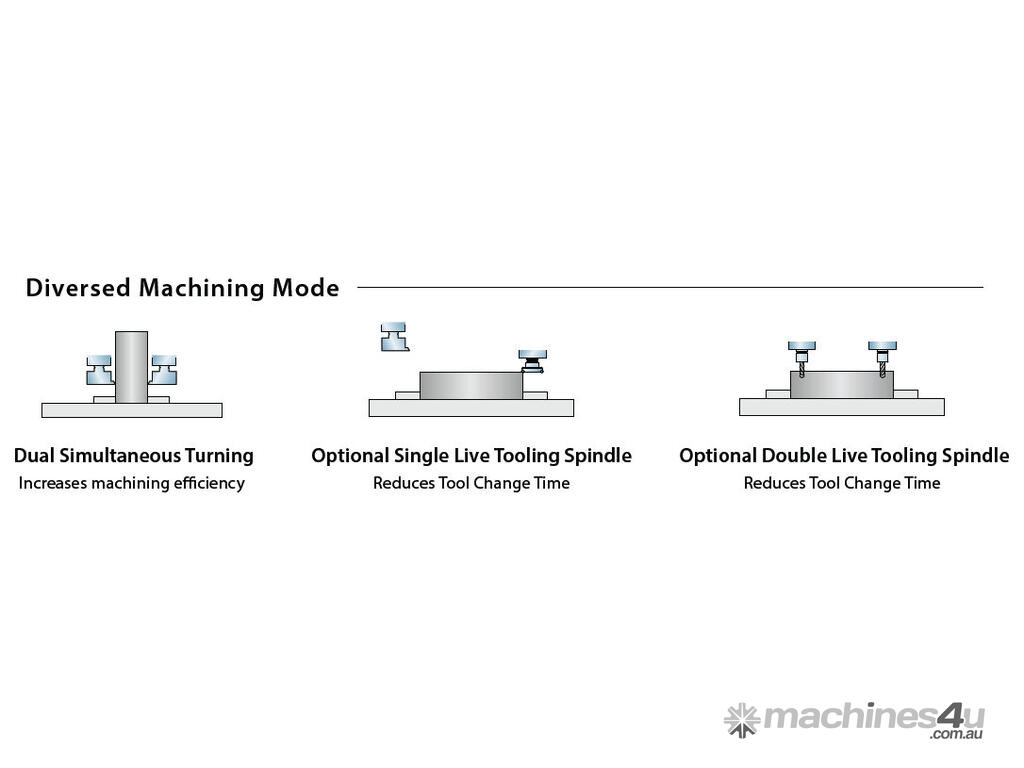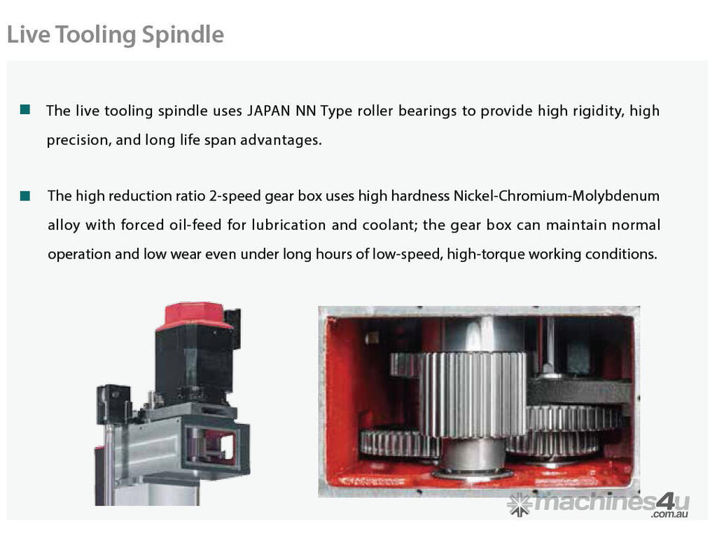 C/w Fanuc or Siemens Conversational Control, Chip Conveyor, Tool Setter. Live tools and 5 axis milling heads available.