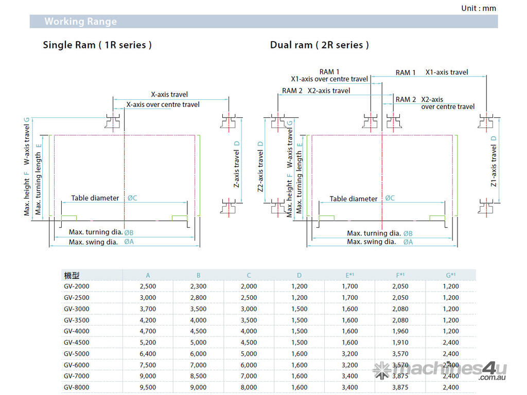 Max turning dia (mm): 2300 / 2800 / 3500 / 4000 / 4500 / 6000 / 7000 / 8000 / 9000