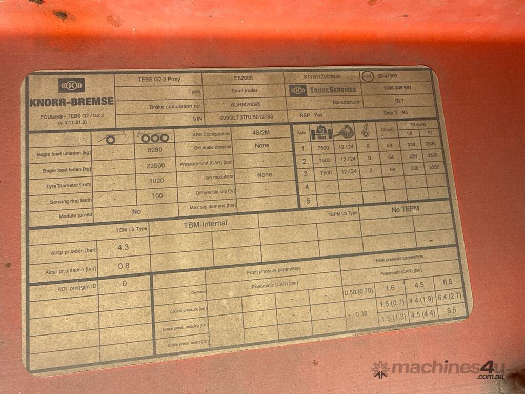No C/P,Graham Lusty Trailers,GLT Triaxle,Tri Axle Side Tipper A Trailer,Hubometer not visible,Rego. No: YQ06KG,VIN: 6V9GLT3TRLB012793,Sold with No Plates