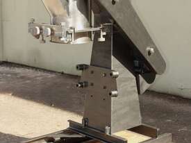 Granulator Sieve, "Jackson & Crockett" model NBR4, stainless steel construction, designed for size reduction and screening of granulated or powdered materials, fitted with perforated sieve basket and rotating impeller for efficient particle separation, suitable for pharmaceutical, food and chemical processing applications, compact design mounted on a heavy duty steel base frame