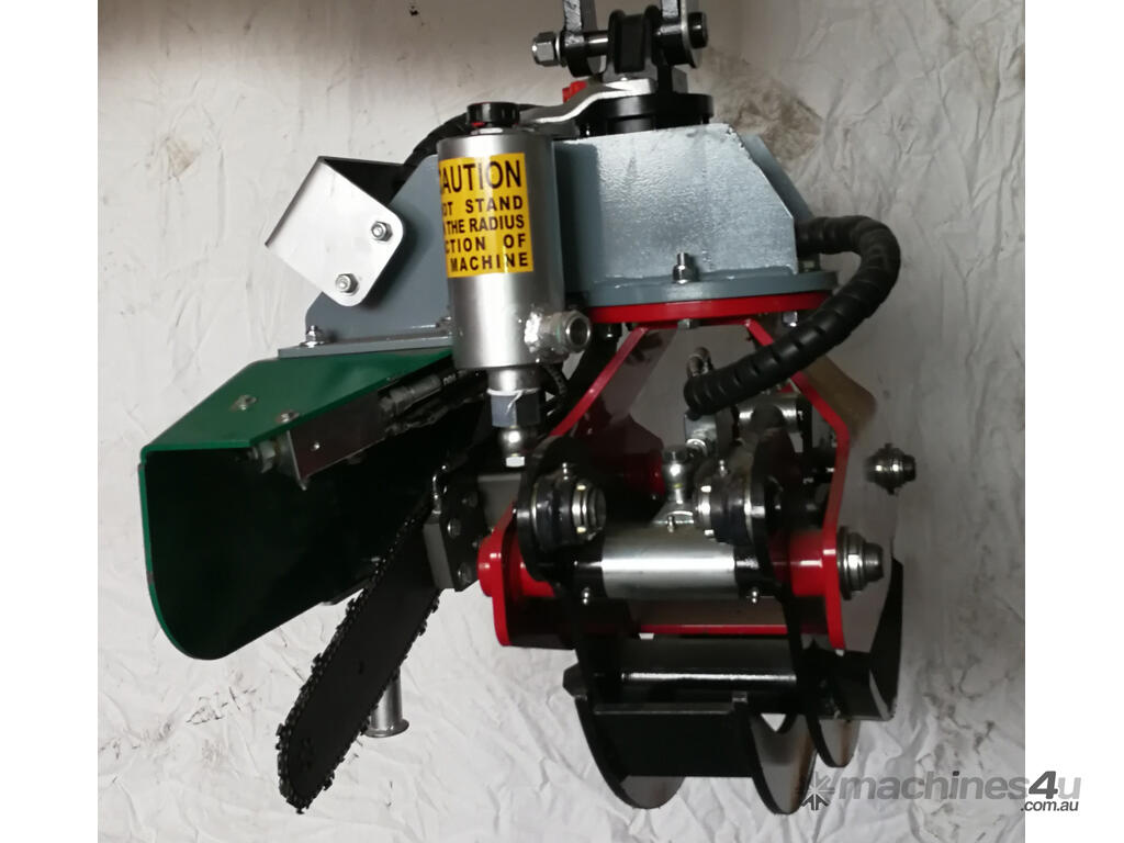 A safe way to remove trees in difficult places This grapple saw is suitable for felling and removing of trees and branches, for example, in parks and near power lines etc. It has no need for any extra hydraulics and it requires a low oil flow. It is also very easy to install. With their light weight and independent controls these units can be used as a crane or excavator attachment, or even on a light boom arm mounted on truck or tractor.
