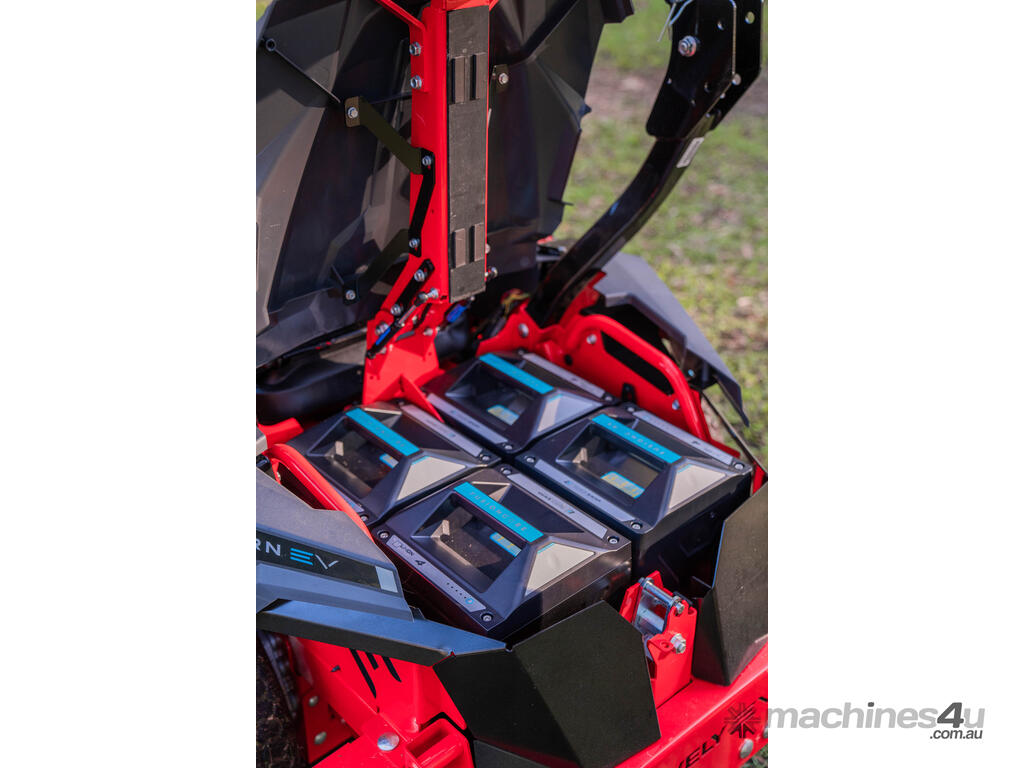 Welcome to superior battery technology from FusionCore. The EV's four swappable batteries deliver the all-day, reliable high-performance power you need in a commercial mower. No pullies, belts, engine oil changes, or driving vibrations. They've been replaced with the quiet hum of success. Powered by FusionCore - the industry’s first swappable lithium-ion battery system.