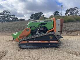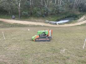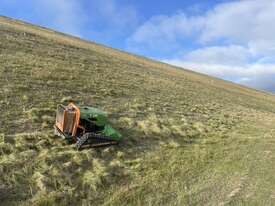 The Green Climber F300 Pro is a compact, remote-controlled hydrostatic flail mower designed for safe and efficient vegetation management on steep slopes and hard-to-reach areas, such as highways and embankments. It can handle inclines up to 60 degrees and features a wide undercarriage, low center of gravity, and Yanmar diesel engine with a special lubrication system for stability and performance on challenging terrain. The remote control keeps the operator at a safe distance, and the machine's compact size allows for easy transport in a standard trailer.