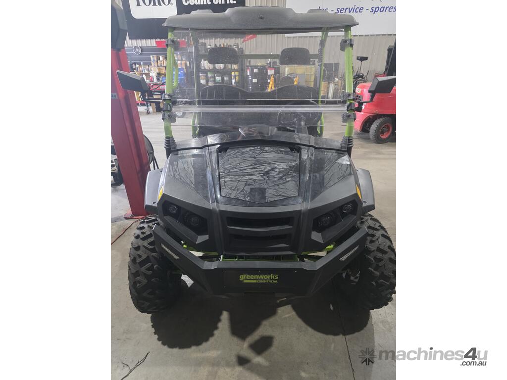 The GREENWORKS® commercial utility vehicle (UTV) was designed to handle even the toughest terrains with comfort and ease. This dependable workhorse is equipped with a powerful 8kW max gTRON drive system and operates with the equivalent power of a 22hp / 352cc displacement petrol engine.