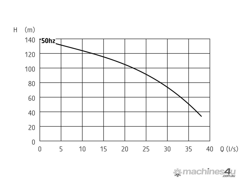 See pump curve, nominal 10-38 L/s at 4-12 bar.