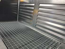 -The grate on the table top allows heavier particles to fall through to be easily captured and removed in the drawer - easy maintenance.