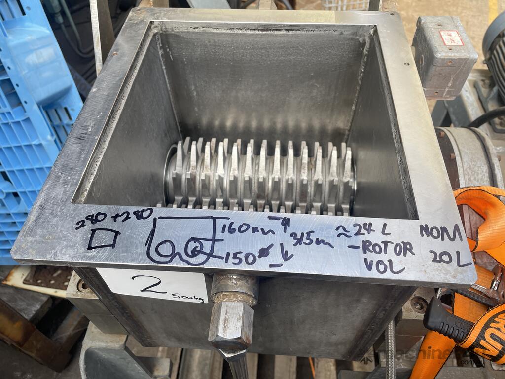 Grinding jacketed stainless chemical mixer grinder lump breaker ex Defence tipping aprox 20L capacity (see second photograph for detailed volumetric information and rotor dimensions)